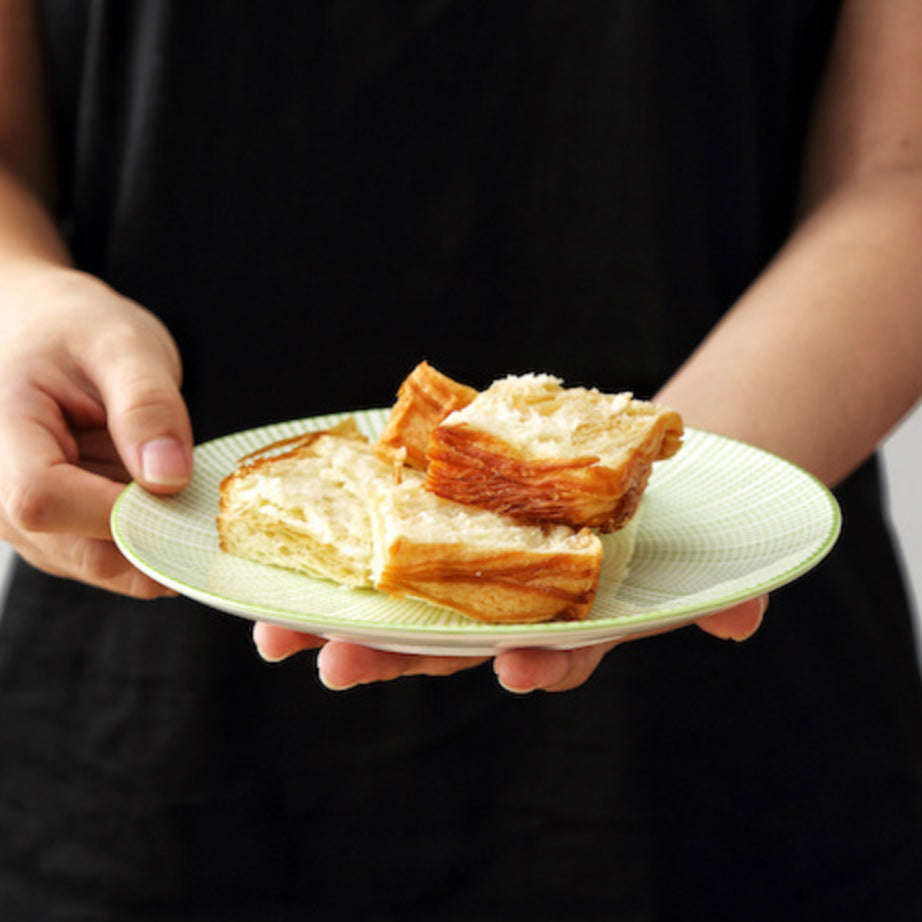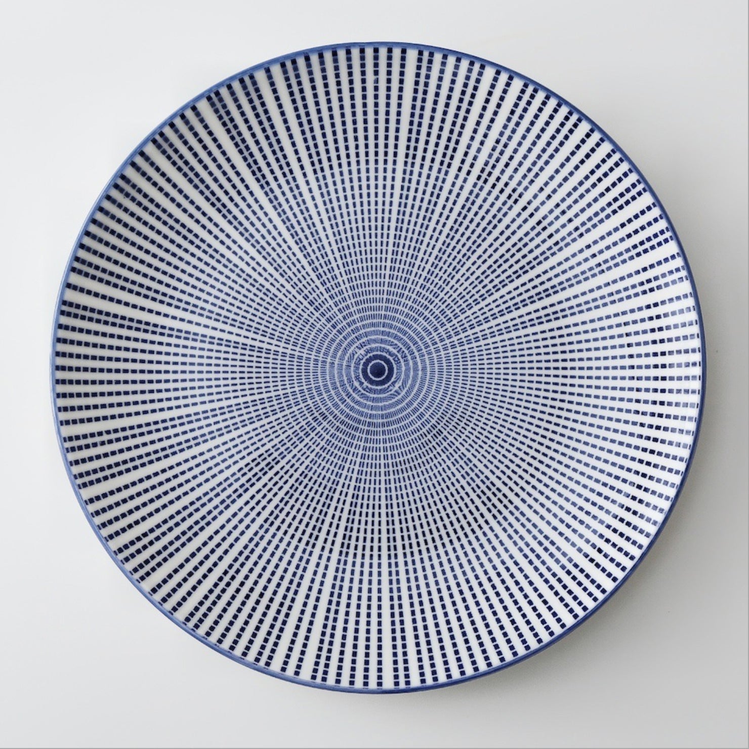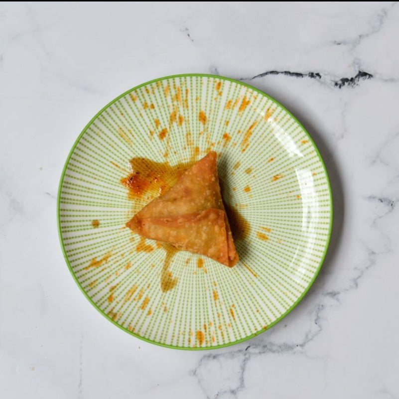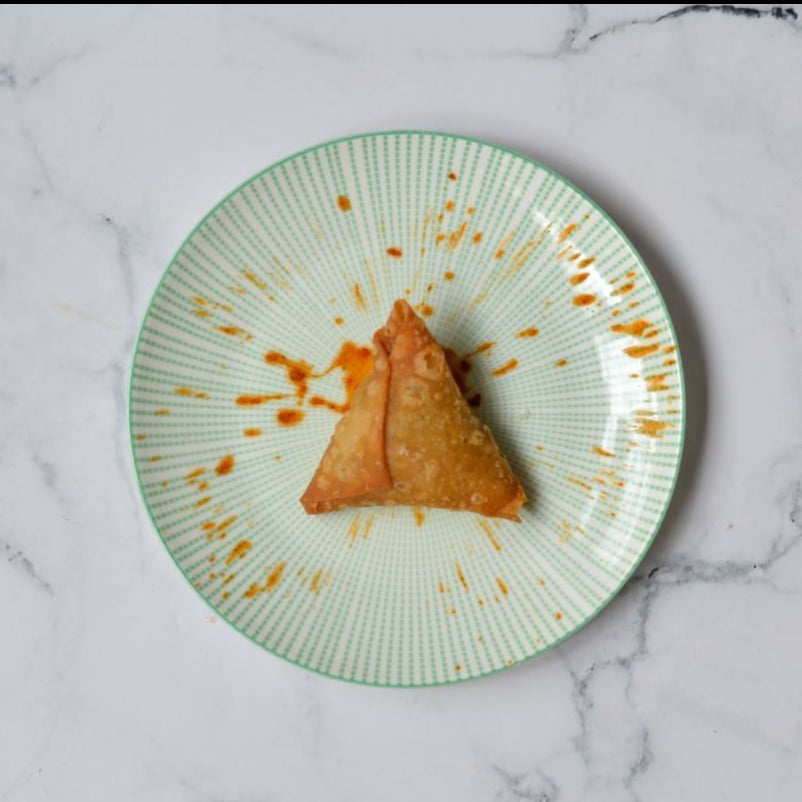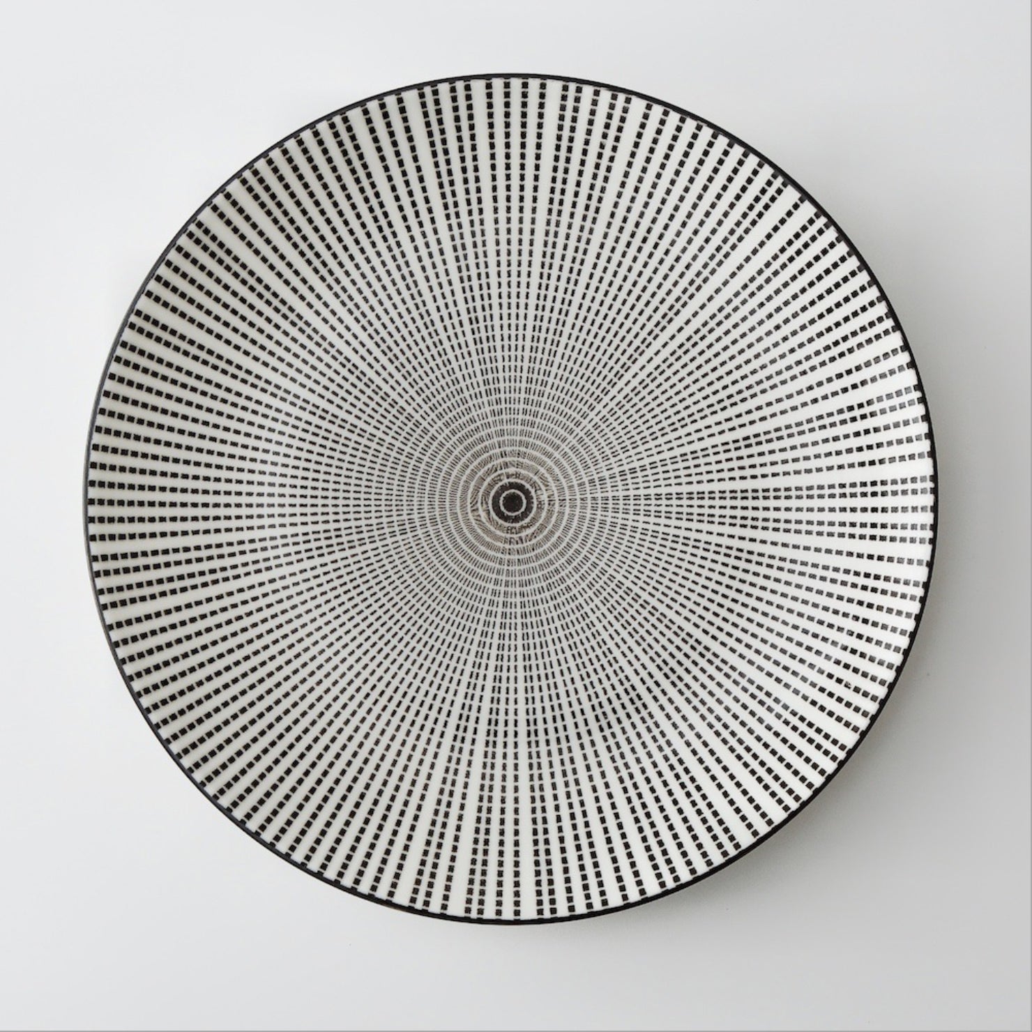 Snack plates that are apt for appetizers and that come in 6 color variants. The colored lines join at the center of the plate to create a geometric pattern. The rims of the plates are colored to add to the uniqueness of the side plate. The starter plates can be used in serving salads, starters and snacks as well.