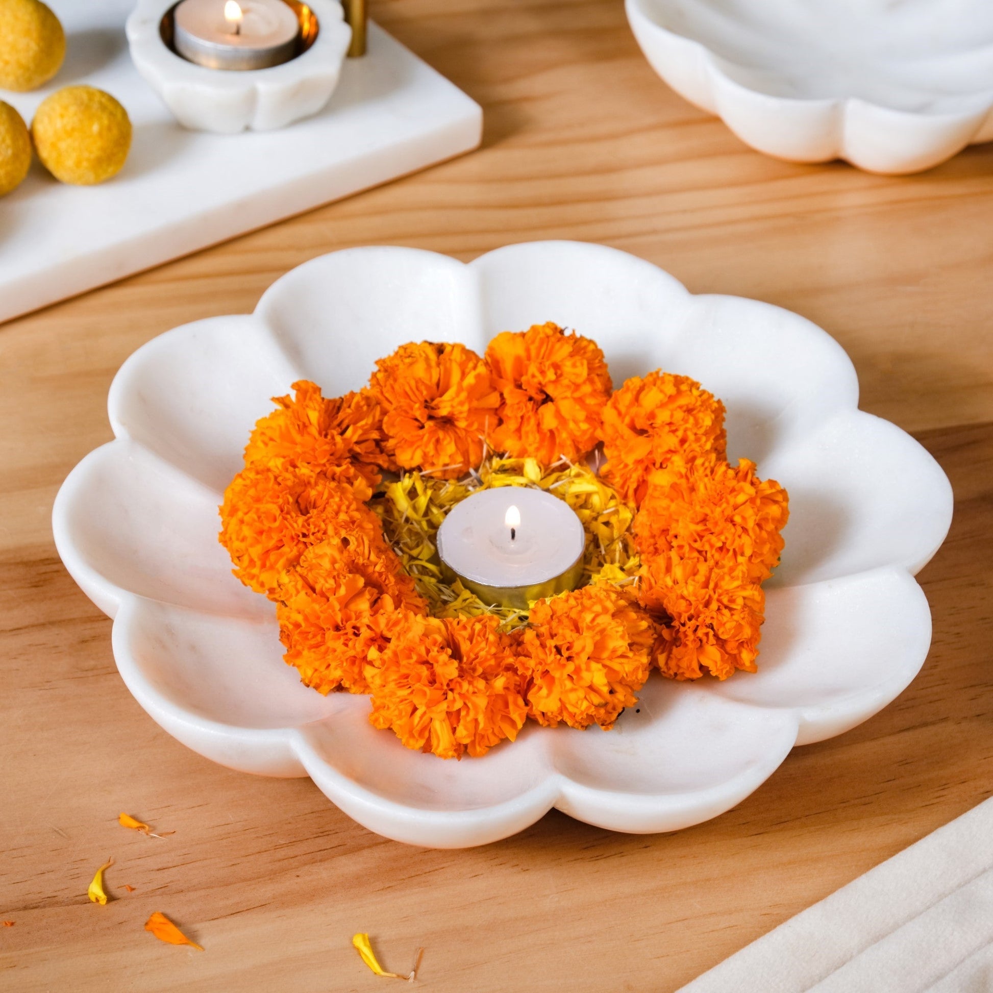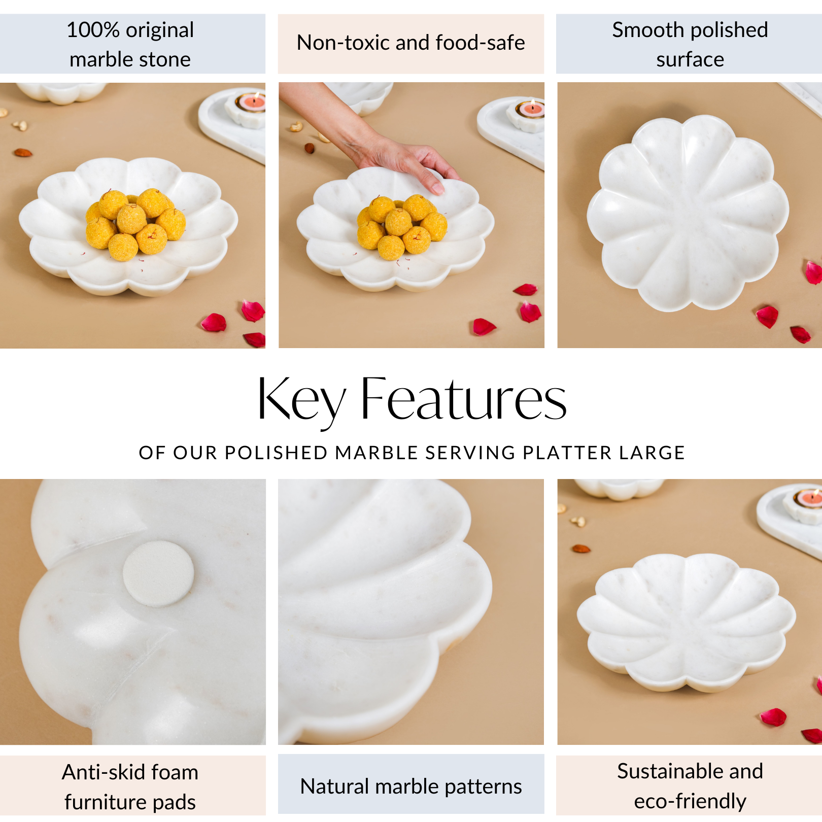 Impress your guests with the timeless beauty of this marble platter, where elegance meets functionality. Designed to be the centrepiece of any gathering, its exquisite flower-shaped design sets the stage for unforgettable dining experiences.