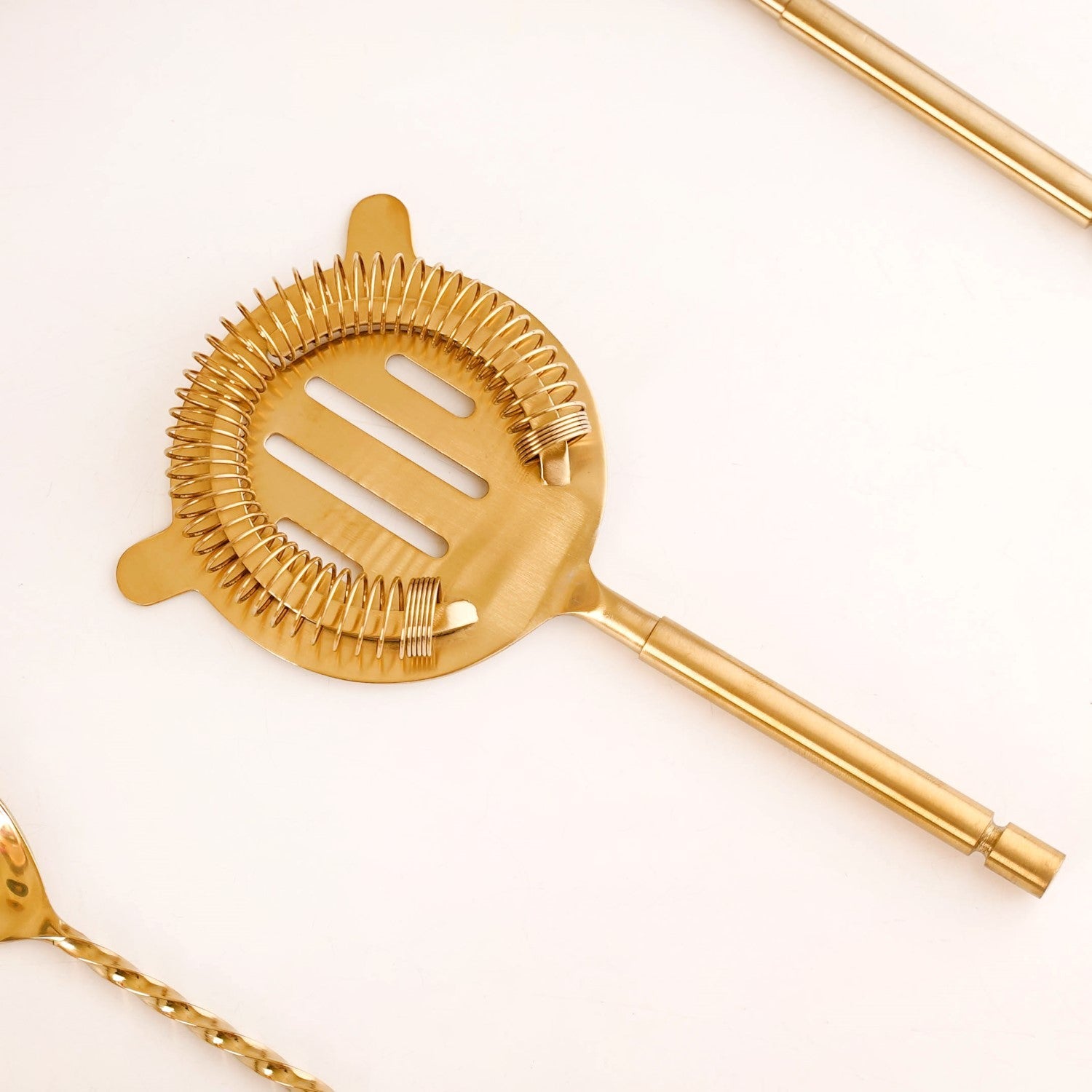 Design: Crafted to impress, each tool in this bar set features a metallic gold finish, achieved through PVD coating for a sophisticated sheen and lasting durability. The mango wood stand complements the set with its warm, natural tones, adding a rustic charm to your bar space. Thoughtfully designed slots keep each tool securely in place, ensuring an organised and accessible setup for any drink-making occasion.