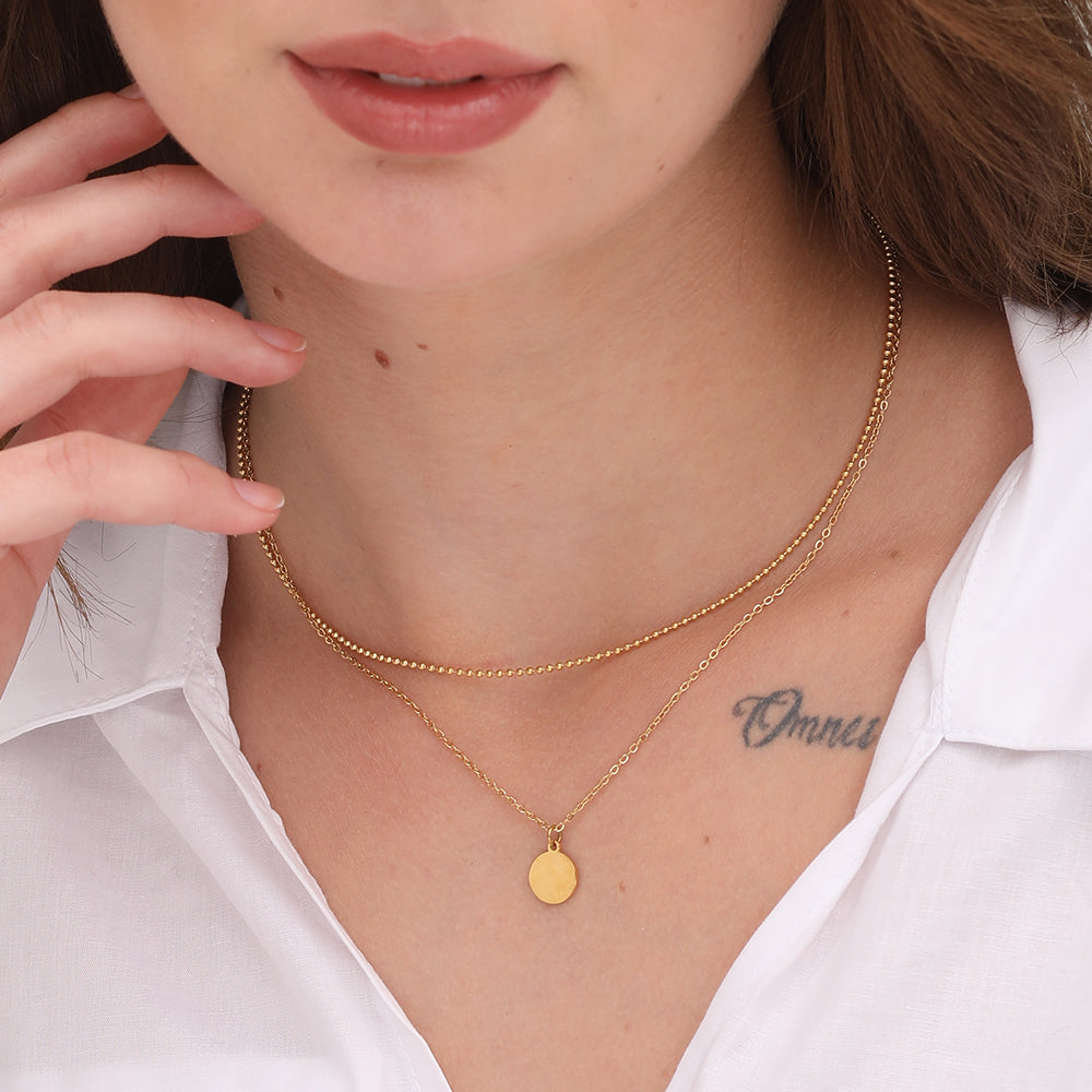 The Little Round Two Layer Necklace combines minimalist charm with modern design. Crafted in stainless steel with a radiant 18k gold tone, this waterproof and anti-tarnish necklace features delicate layered circles, adding subtle elegance to any outfit. Perfect for casual, office, or evening wear, it enhances both everyday and festive ensembles with chic sophistication.