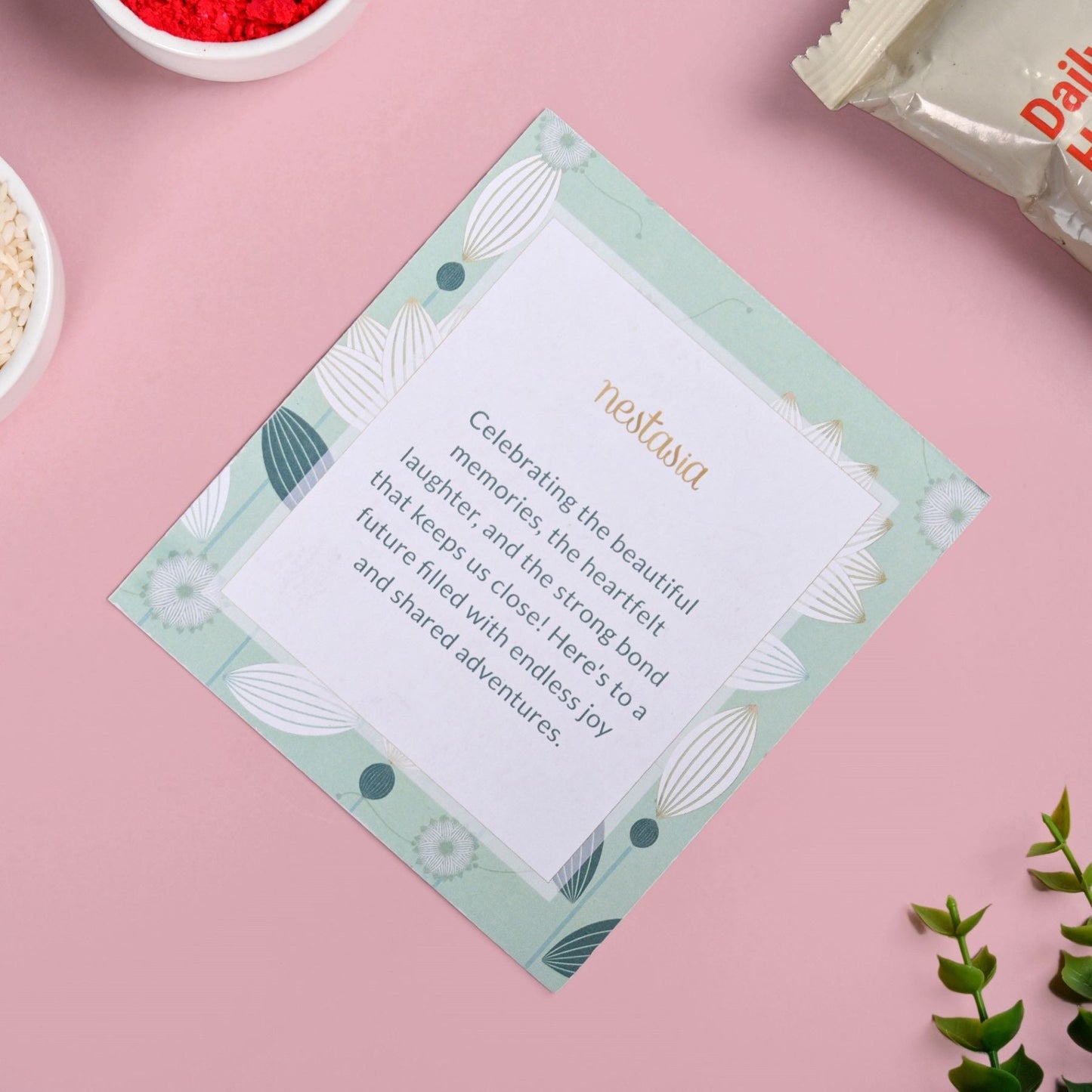Featuring a cheerful purple dinosaur and a smiley-printed ribbon, this Rakhi is a fun twist on traditional styles. Lightweight, safe, and super adorable, it brings a big smile to tiny wrists. The band is a smooth, off-white ribbon printed with yellow smiley faces and the word “SMILE.” The main feature is a 3d purple dinosaur with bright yellow spikes, giving the Rakhi a bold and playful personality that stands out on little wrists. The rakhi comes as a complete part of a set which includes 1 Rakhi, 1 dry fruits packet, 1 wish card and 1 roli-chawal bottle set.