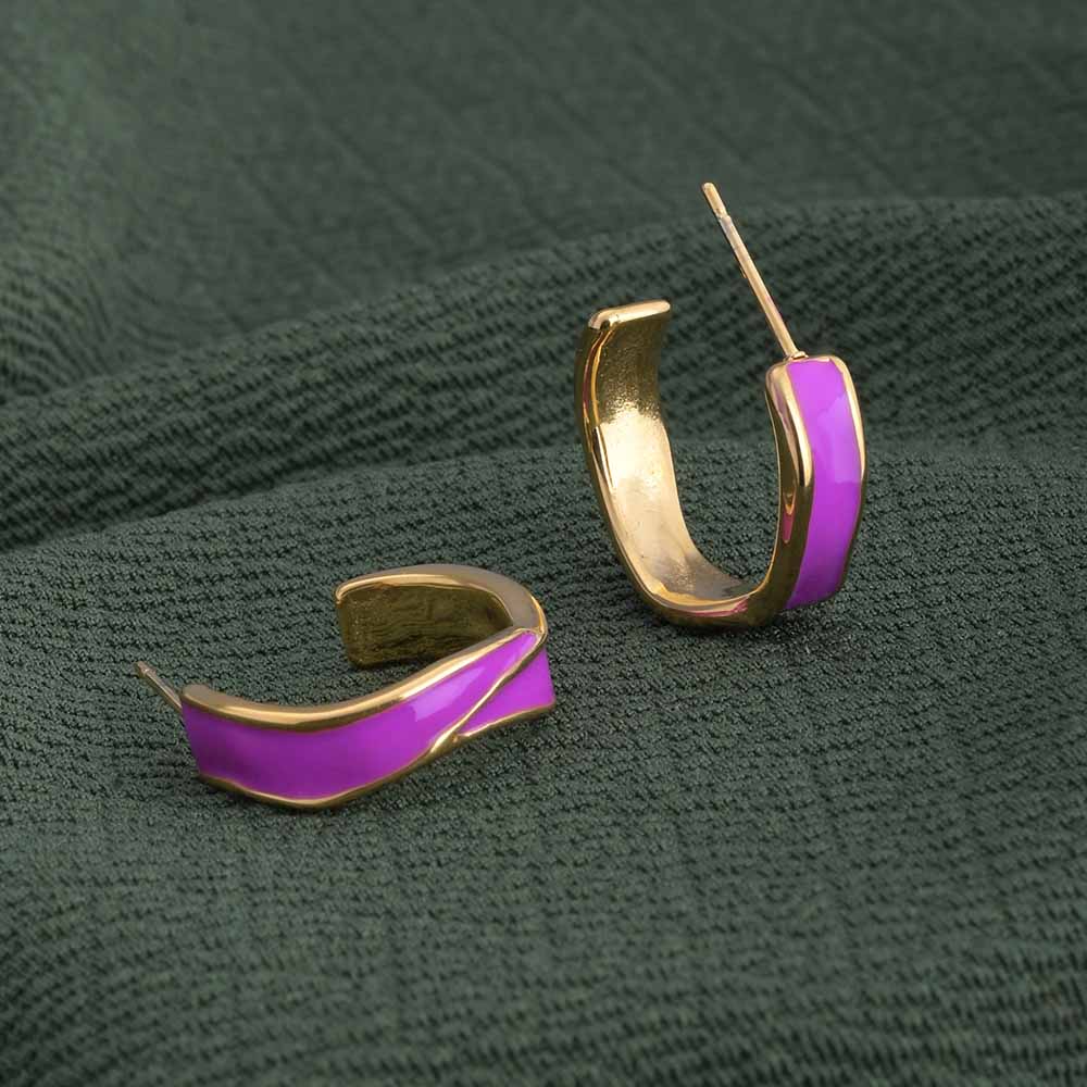 Add a pop of colour to your jewellery collection with these 18k gold plated purple round hoop earrings. The perfect blend of elegance and playfulness, they bring a modern twist to the classic hoop. With their radiant gold finish and vibrant purple detail, these earrings transition effortlessly from casual brunches to evening gatherings, staying waterproof and anti-tarnish for long-lasting charm.