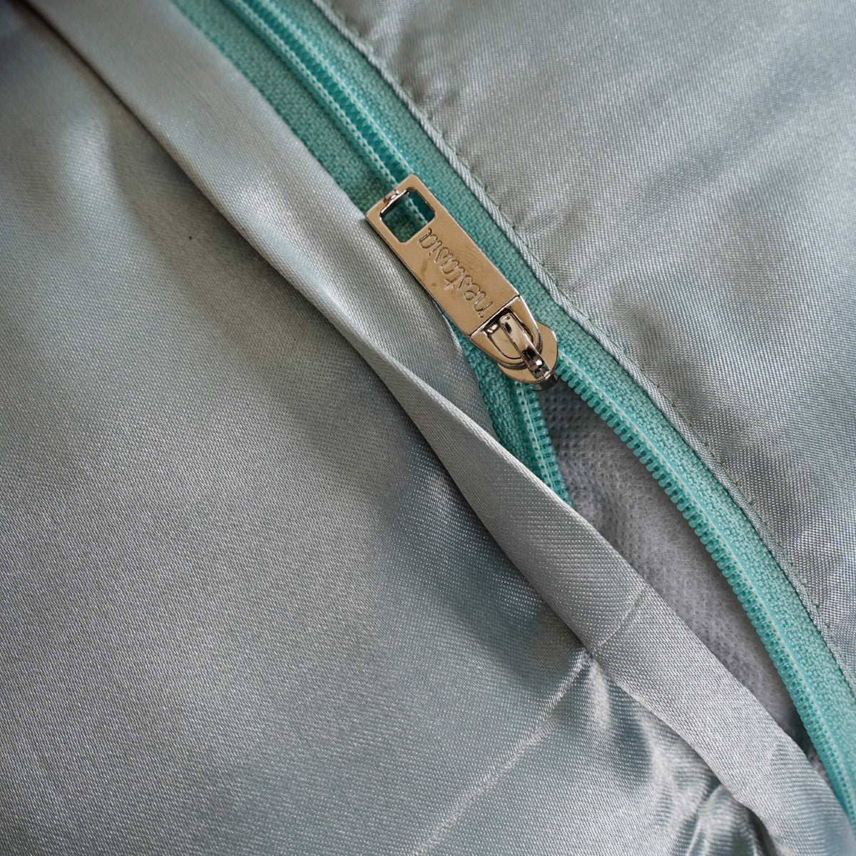 Bring a touch of chic coziness into your bedroom with our aqua blue bed linen set of 3 and create an oasis of tranquility. Included in this regal set is 1 king-size bed cover that will wrap you up in pure comfort as you drift off into dreamland. The two matching standard-size pillowcases feature a smooth zipper system that allows you to seamlessly and effortlessly insert your pillows, offering both style and practicality. Meticulously designed from a premium blend of poly silk, with a polycotton backing and an inner lining of 80 GSM poly fibre sheet, these linens are soft to the touch, durable, and skin-friendly. And the best part? They provide exceptional warmth and breathability, making them the perfect bedding all year around.