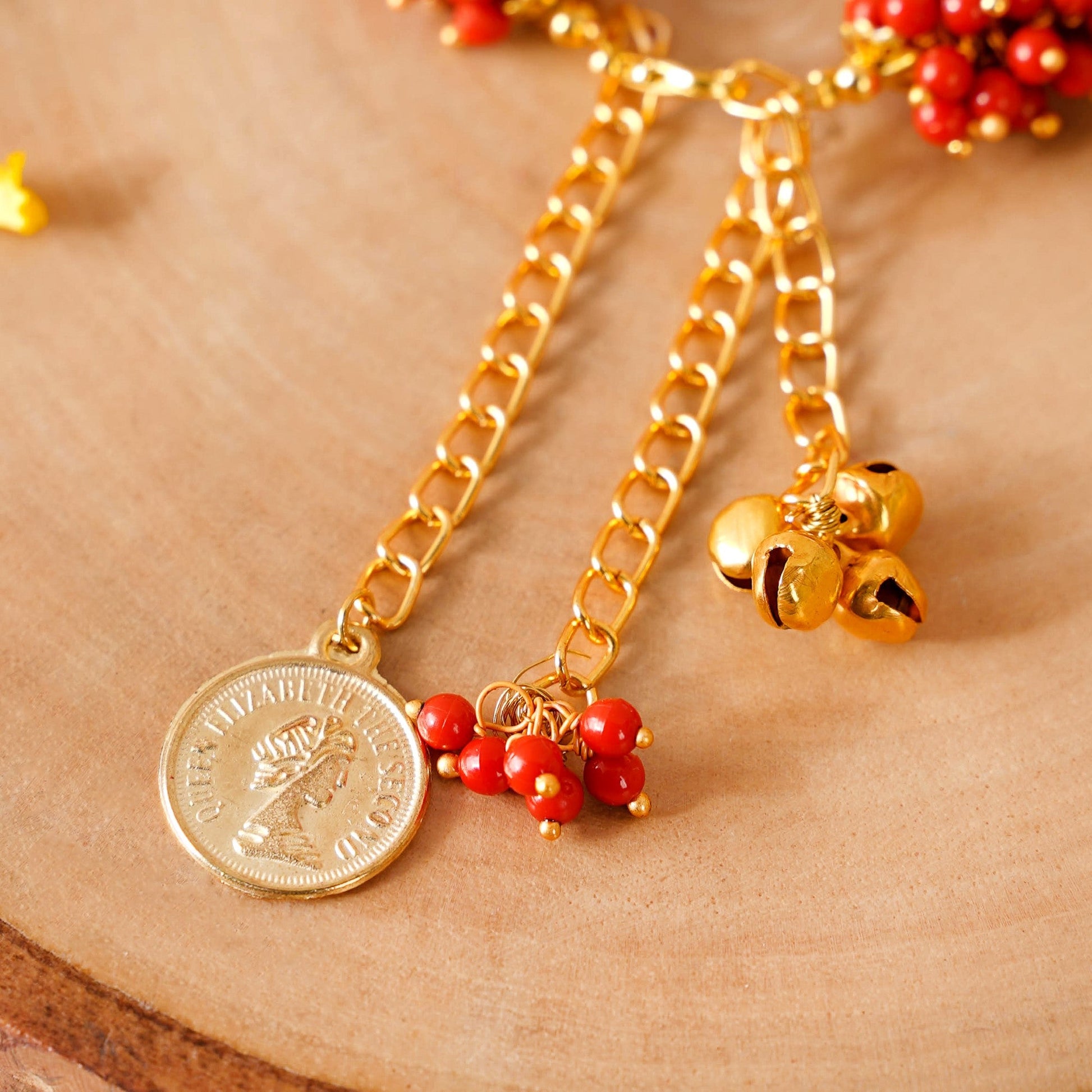 Celebrate the bond of love and protection with our exquisite Raksha Bandhan gift hamper for bhaiya and bhabhi. The gift set includes 2 beautiful Rakhis - a traditional Rakhi for your brother and a bracelet Rakhi for your sister-in-law, both featuring a charming Radha-Krishna motif. In Hindu mythology, Radha-Krishna symbolises eternal love and devotion, making these Rakhis even more special. Adorned with red and white artificial pearls and gold detailing, the Rakhi hamper also comes with a roli-chawal set, a pack of dry fruit mix, and a heartfelt greeting card, all elegantly presented in a gift box.