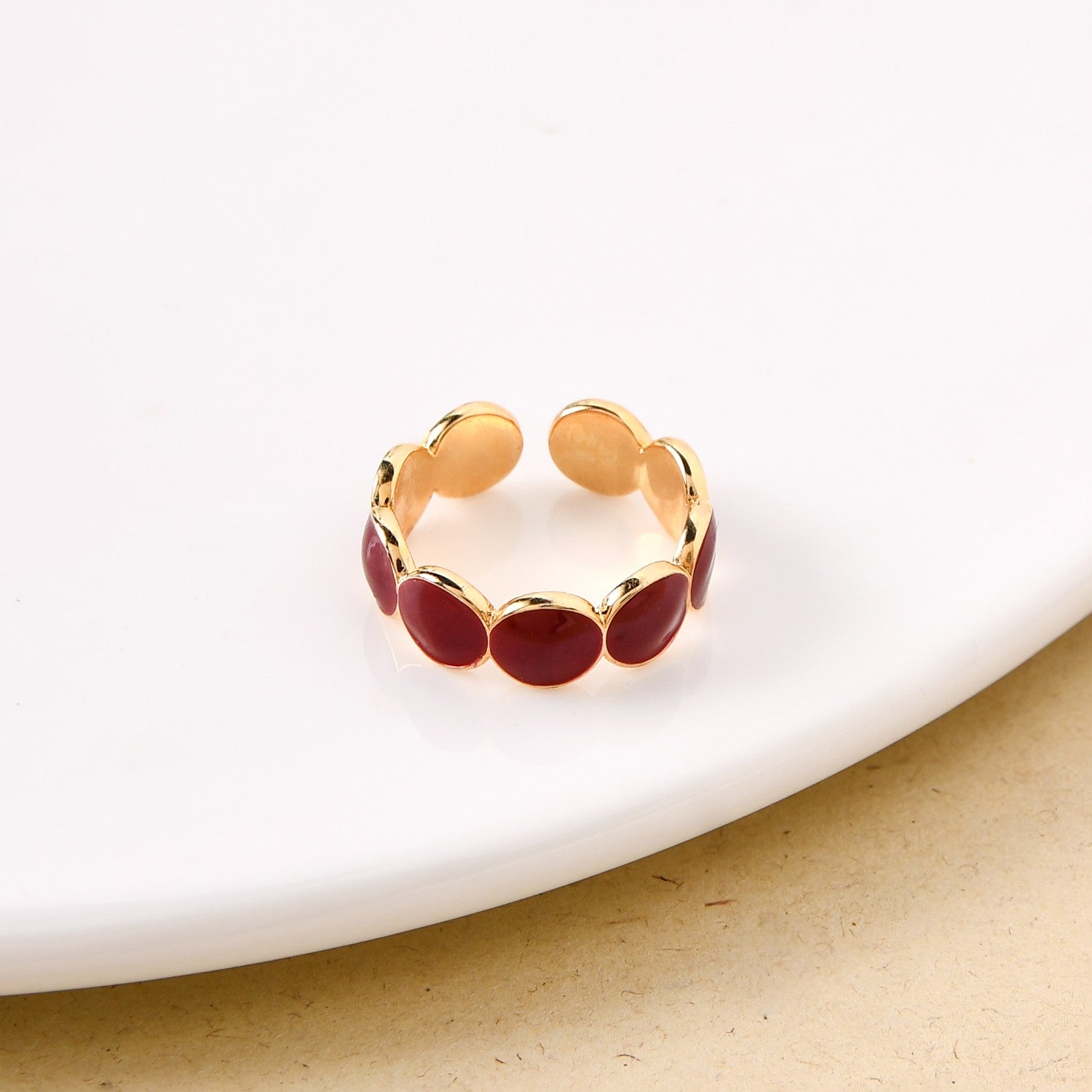 Make a bold statement with this gold ring, featuring a unique palette-shaped design with a smooth red enamel coating. This dainty ring is adjustable, giving you a comfortable fit for any occasion. The playful shape adds a creative touch to your look, while the sleek finish keeps it stylish and versatile. Whether you’re dressing up for a party or keeping it casual, it easily complements your outfits with a fun, artistic flair.
