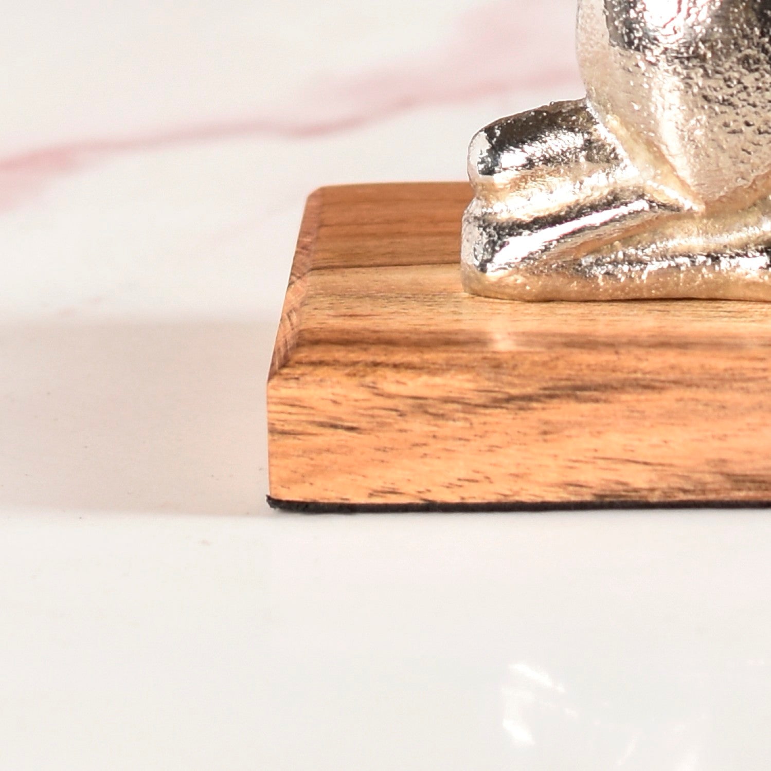 Benefits: The aluminium body is rust-resistant and durable. Its sculptural form keeps the piece steady and balanced. The smooth surface makes cleaning quick and fuss-free. Wooden base ensures the decor stays secure on display. Its compact shape suits shelves, consoles, and entry tables with ease.