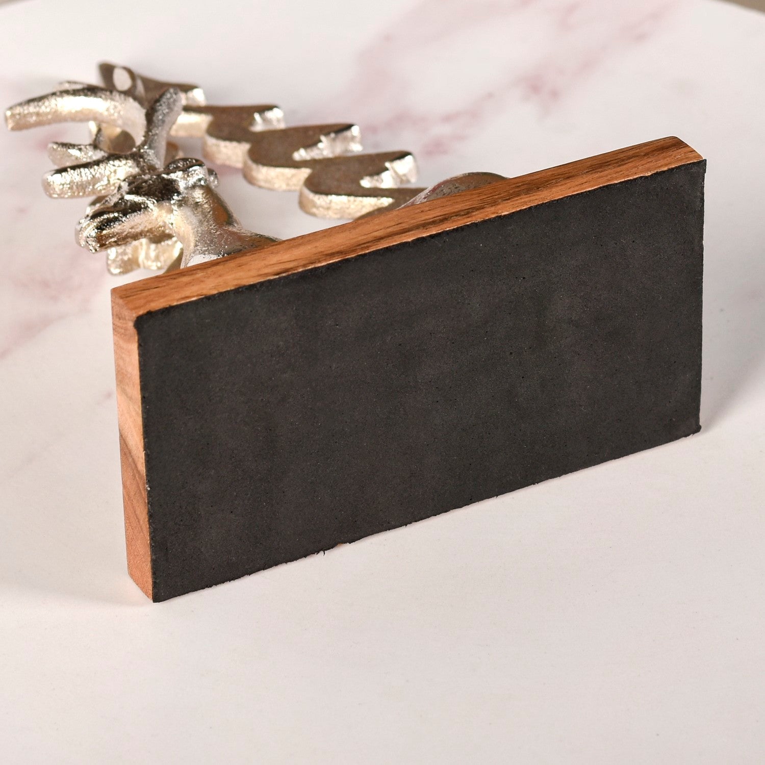 Design: This silver decor piece features a stylised Christmas tree with a seated reindeer resting gracefully at the base. The tree is outlined in aluminium with clean lines that offer a light and airy silhouette. In contrast, the reindeer is fully sculpted with fine detailing across its antlers and body. Both elements sit atop a smooth wooden base that adds earthy warmth to the festive palette. The silver finish has a subtle gleam that catches the light beautifully from every angle. Together, they create a festive centrepiece that balances minimalism with seasonal storytelling, perfect for home interior design lovers.