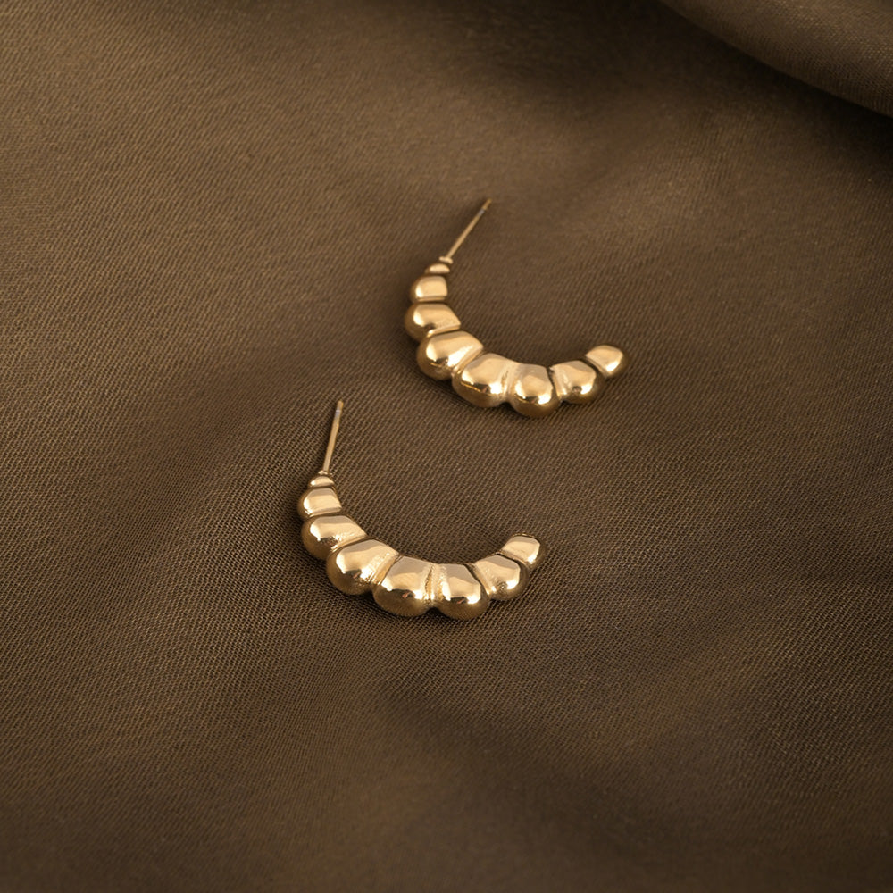 Our all-new Ribbed Half Hoop Earrings offer a modern take on a classic design. Unquestionably a versatile piece to adorn your outfit with.