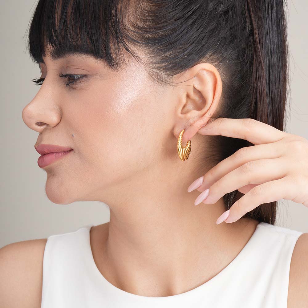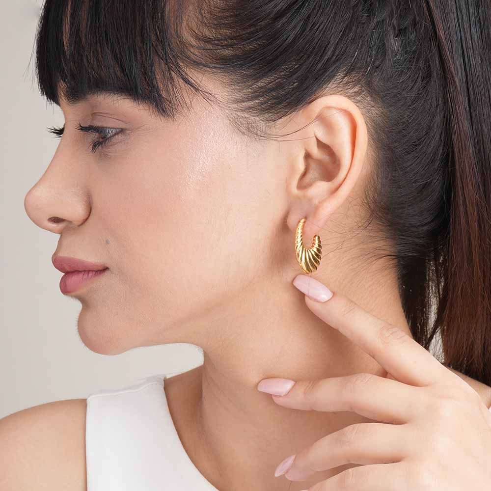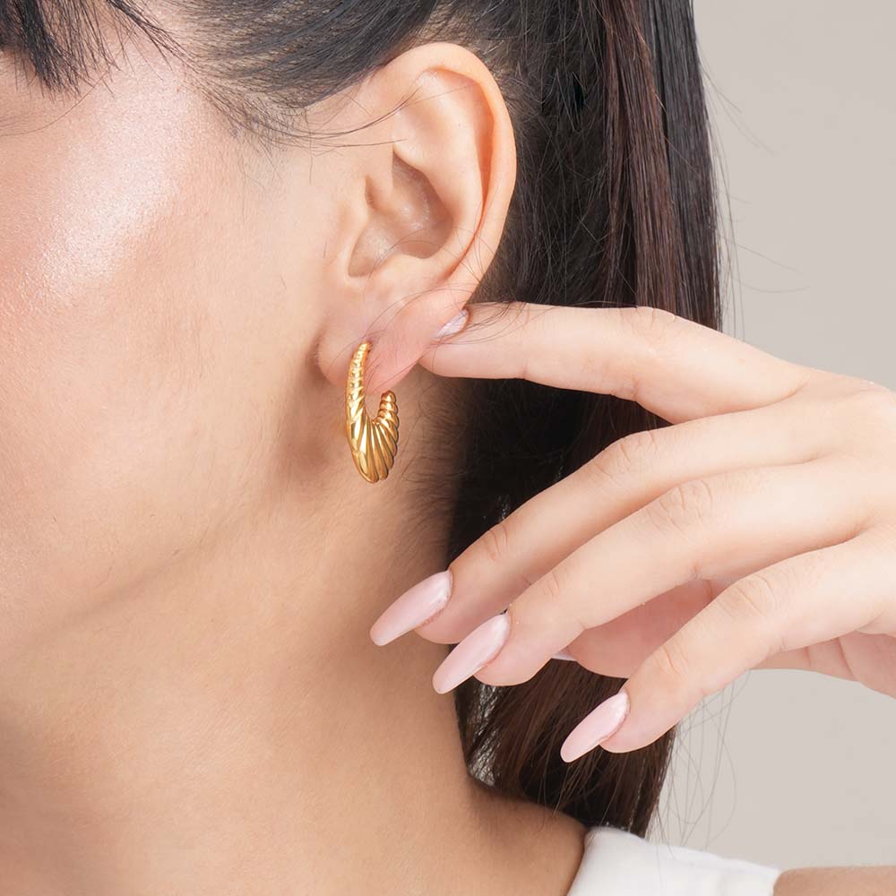 Our all-new Ribbed Oval Hoop Earrings offer a modern take on a classic design. Unquestionably a versatile piece to adorn your outfit with.