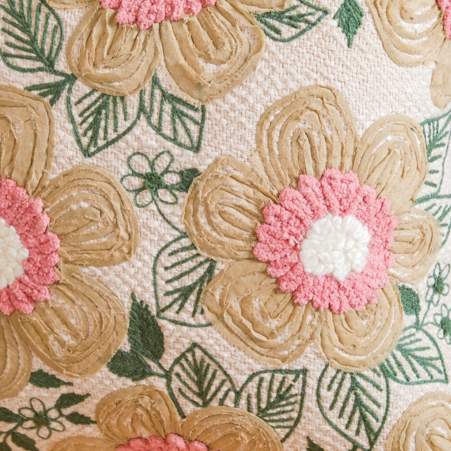 Ribbon And Punch Needle Embroidery Cushion Case 16x16 Inch
