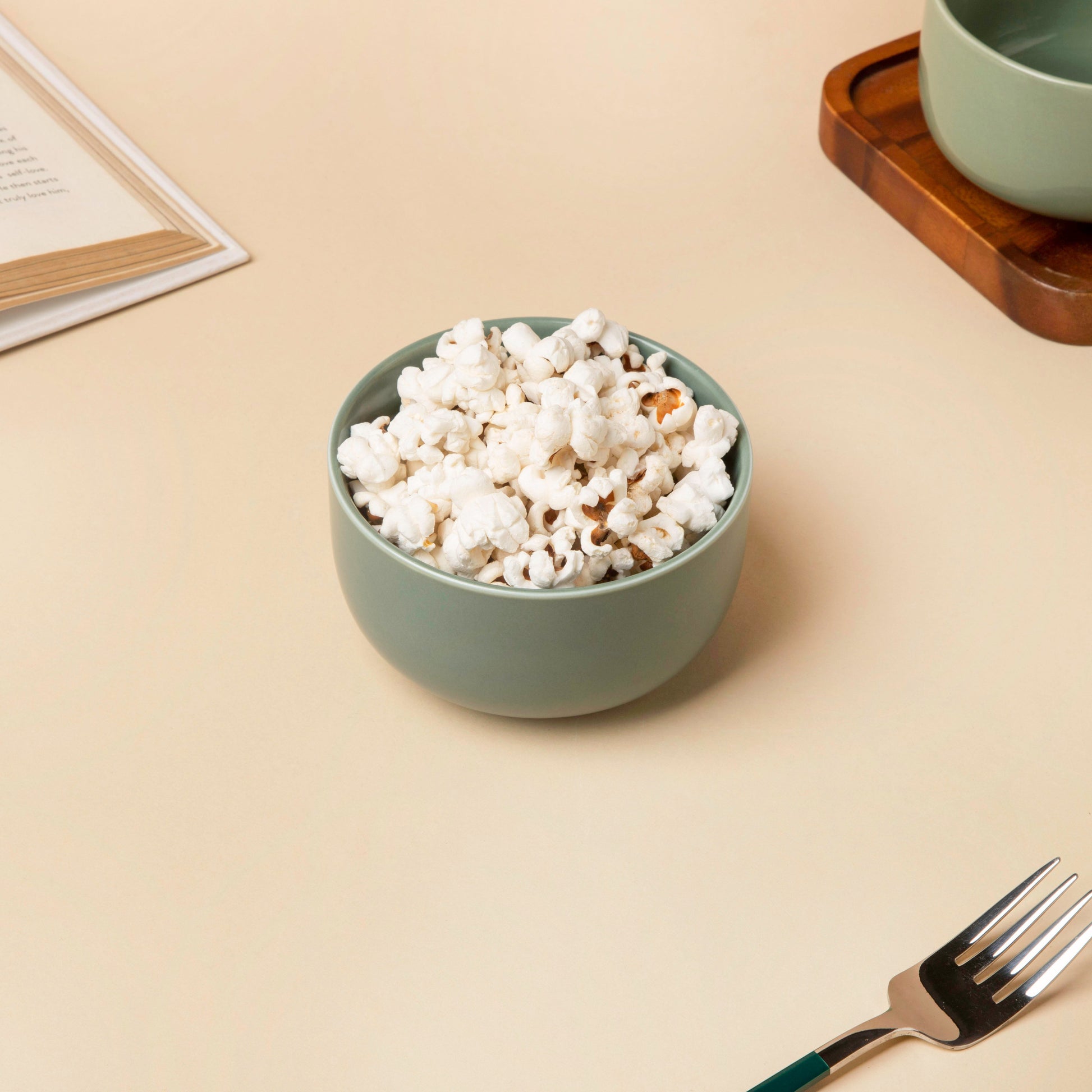 Nestip: Pair the matt green ceramic snack bowl with bowls of the same color to create a set.