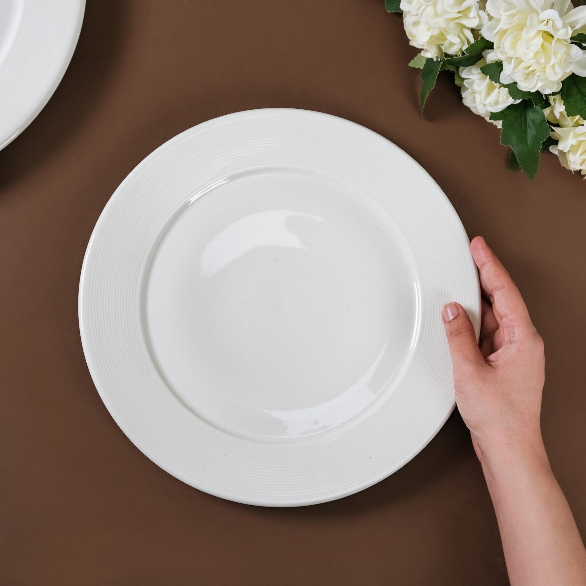 The dinner plate is made of ceramic and is intended to provide a sense of elegance to any neutral dining setting. The white dish complements the delicacies that are served on it. The ceramic plate is ideal for serving main courses like noodles, pasta, and many more. The dinner plate can also be used to serve snacks or appetizers as a platter.