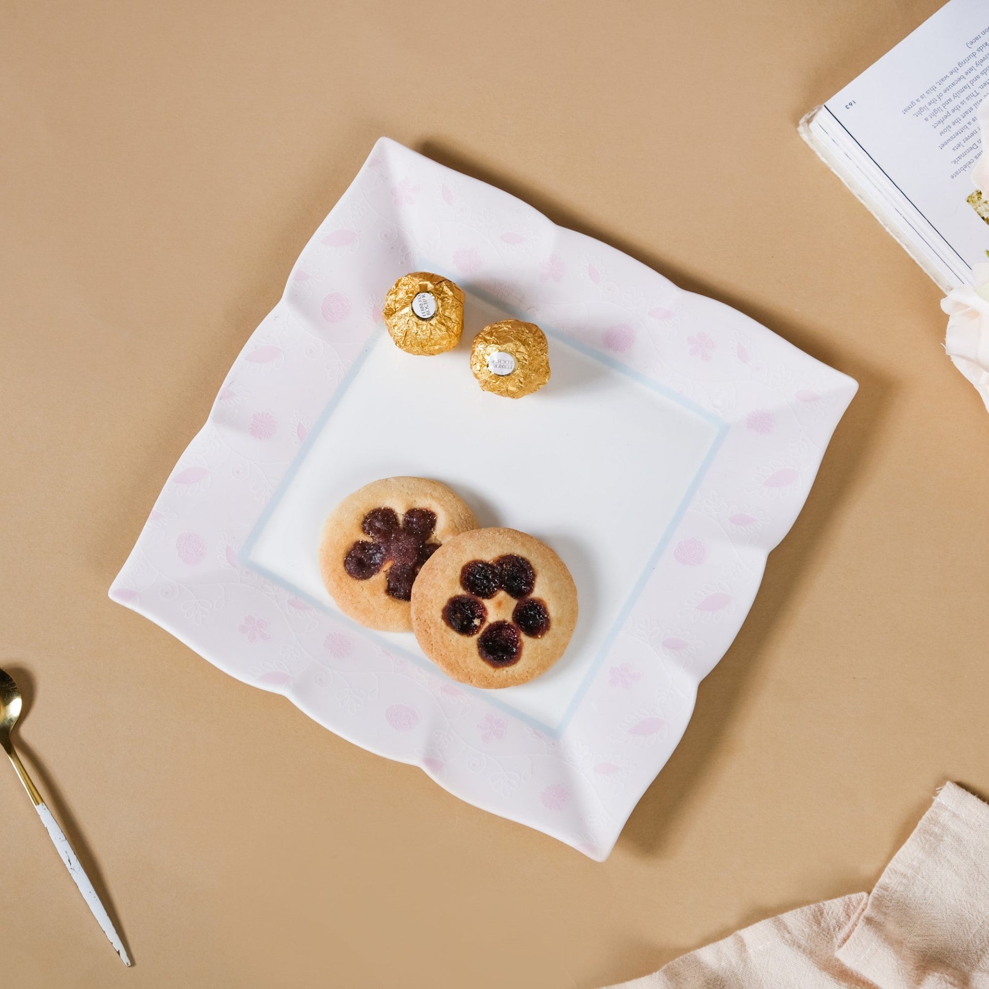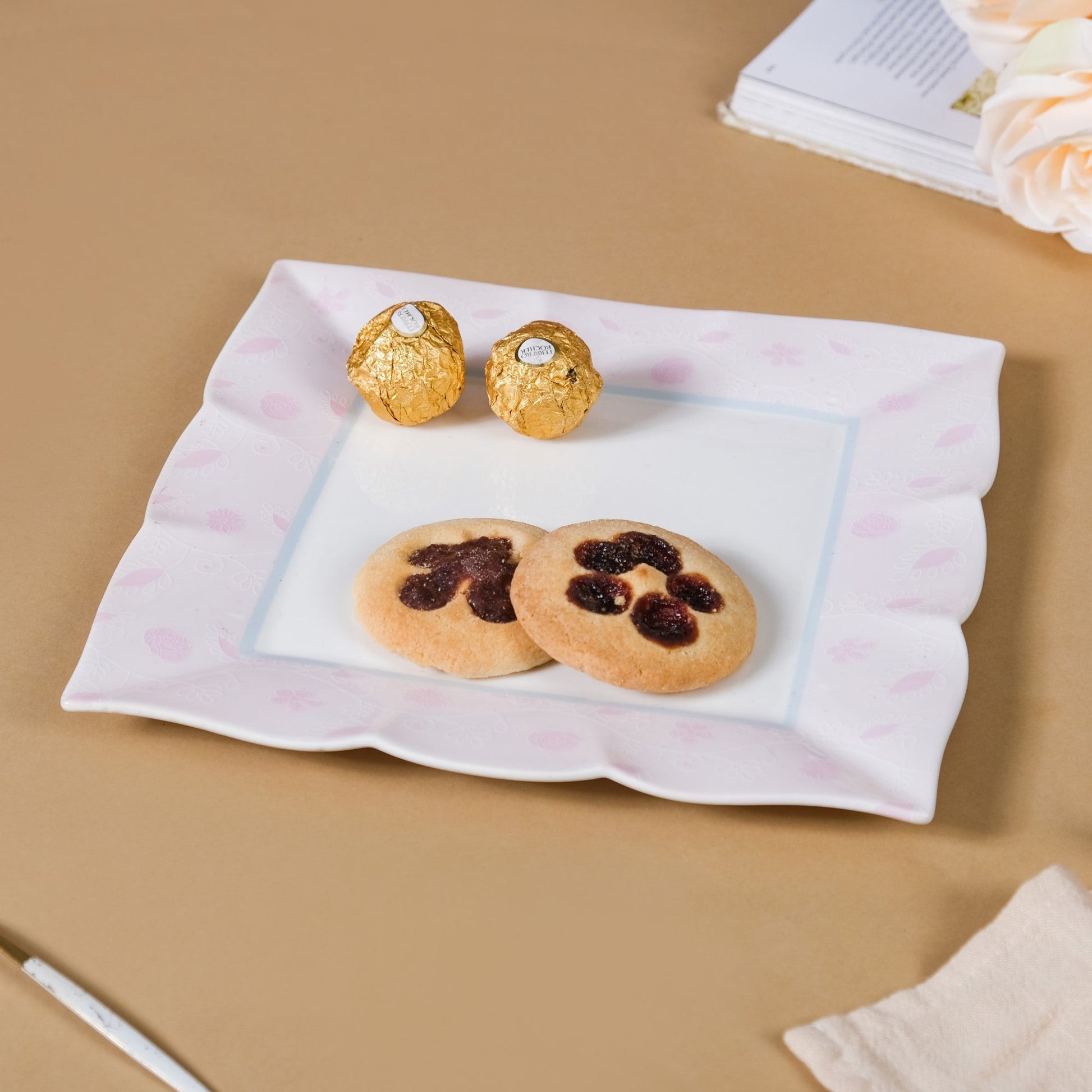 Nestip: The ceramic white and pink snack plate can be an ideal anniversary gift.