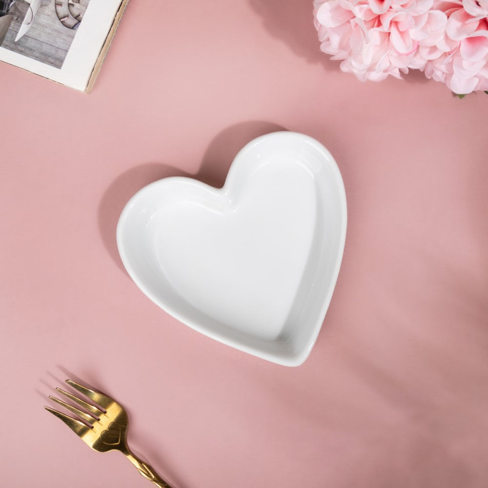 The classic white ceramic plate will add a touch of elegance to one's next date night or housewarming celebration. The white heart-shaped plate is perfect for presenting delightful appetizers, nibbles, or snacks. The heart dish can also be used to serve cut fruits, salads, and desserts.