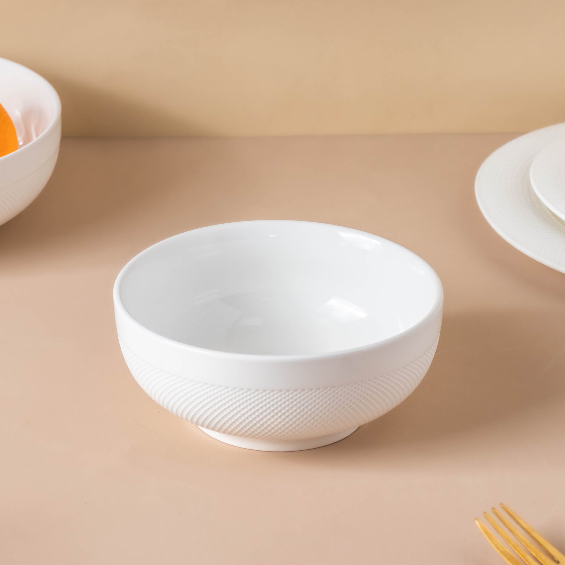 Riona Textured Ceramic Popcorn Bowl White 500 ml