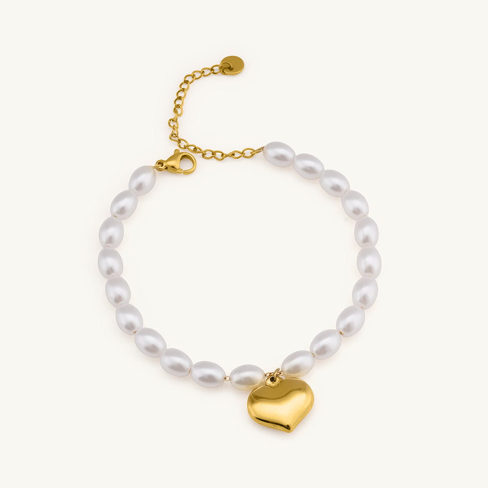 The Romantic Pearl and Gold Bracelet captures timeless allure through a graceful blend of lustrous pearls and radiant 18k gold plating. Crafted in stainless steel, this elegant piece embodies femininity and modern refinement. Designed to be waterproof, anti-tarnish, and skin-friendly, it effortlessly transitions from day to night - a classic jewellery essential that adds a touch of romance to every look.