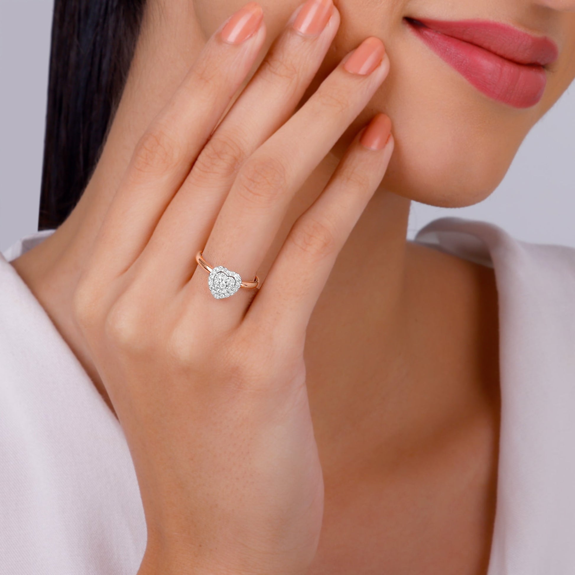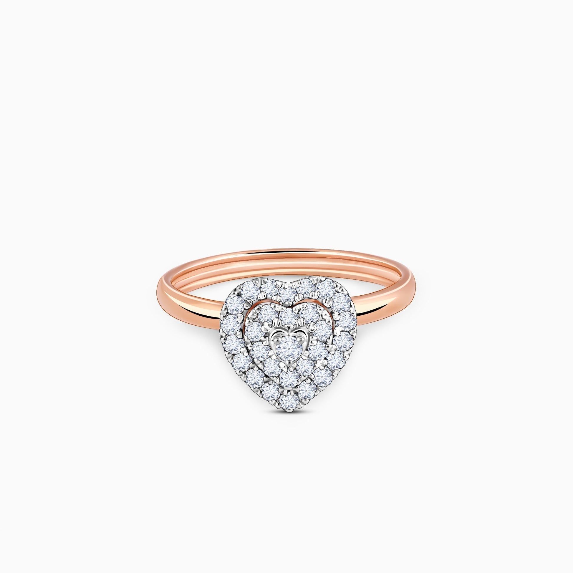 This pure rose gold ring features a heart motif studded with lab grown diamonds.