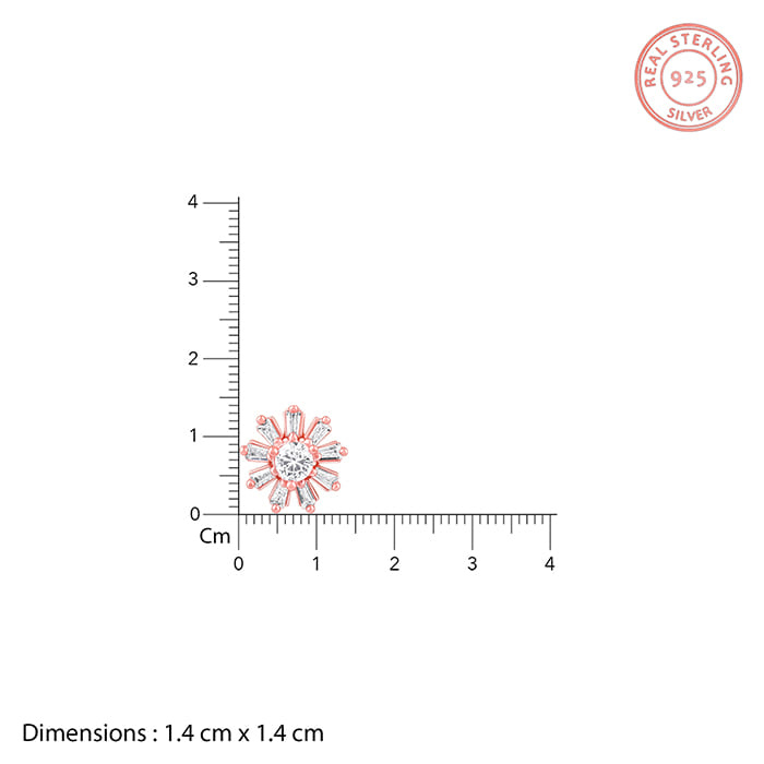 This rose gold pendant features a floral design nestling circular and baguette-cut zircons.