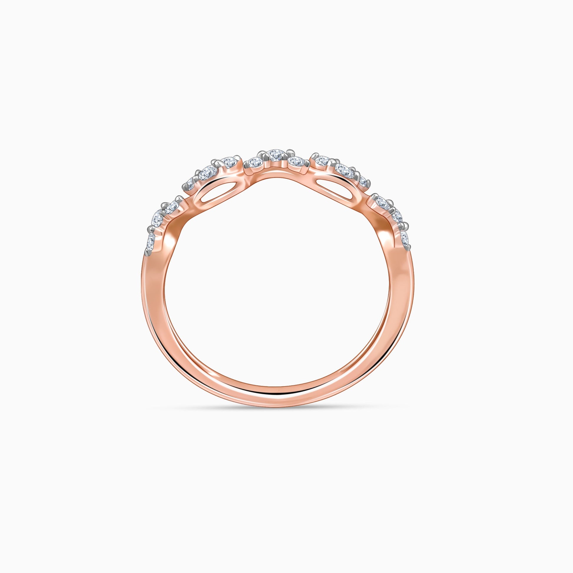 This pure rose gold ring for women features a simple band with a wavy design. A set of three lab grown diamonds features on every alternate indentation, bringing the design to life.