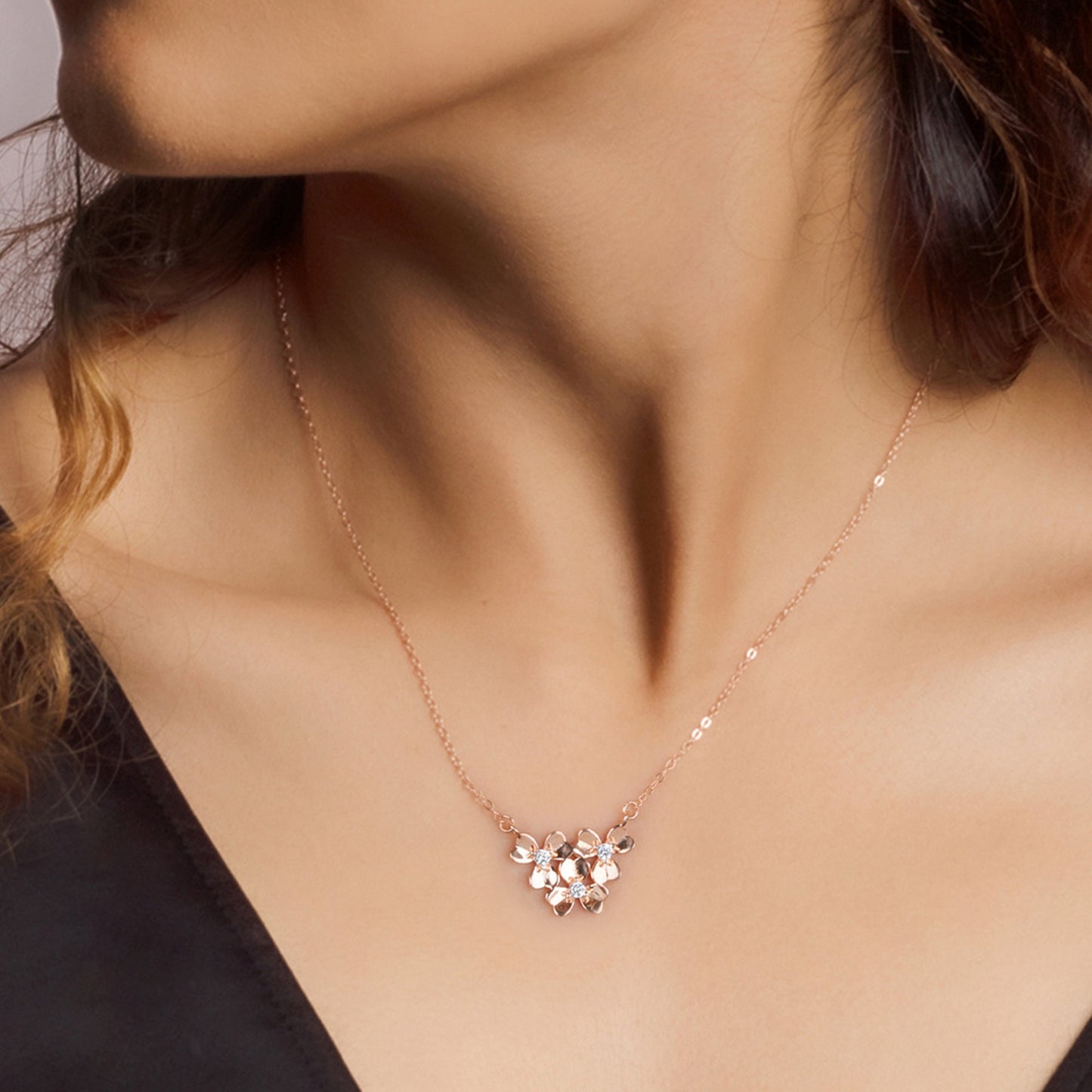 The Rose Gold Blossoming Necklace is inspired by the winter months when various colourful flowers begin to blossom.