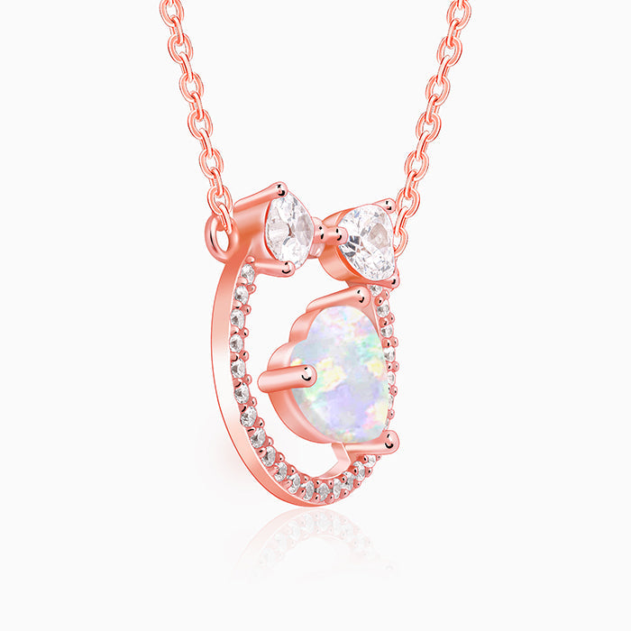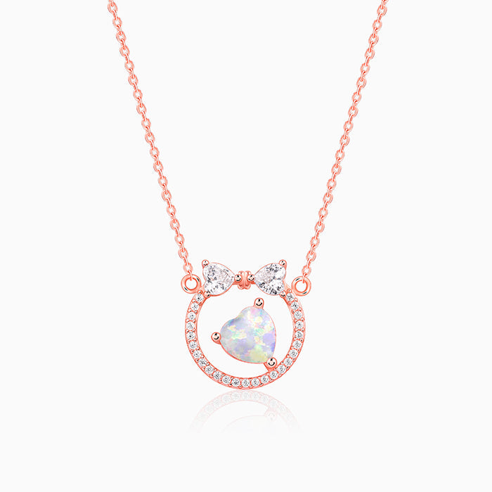 This rose gold necklace for women features a hollowed circular motif and a bow studded with zircons. An inclined heart motif featuring opal stone sits within the circle. Let the stunning elegance of Trendy Freak Sky High inspire you to chase every dream and celebrate every milestone.