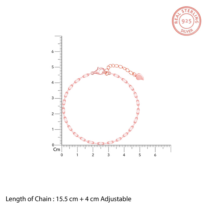 This rose gold bracelet has a link chain design with rounded metal shape, giving it an extra edge.