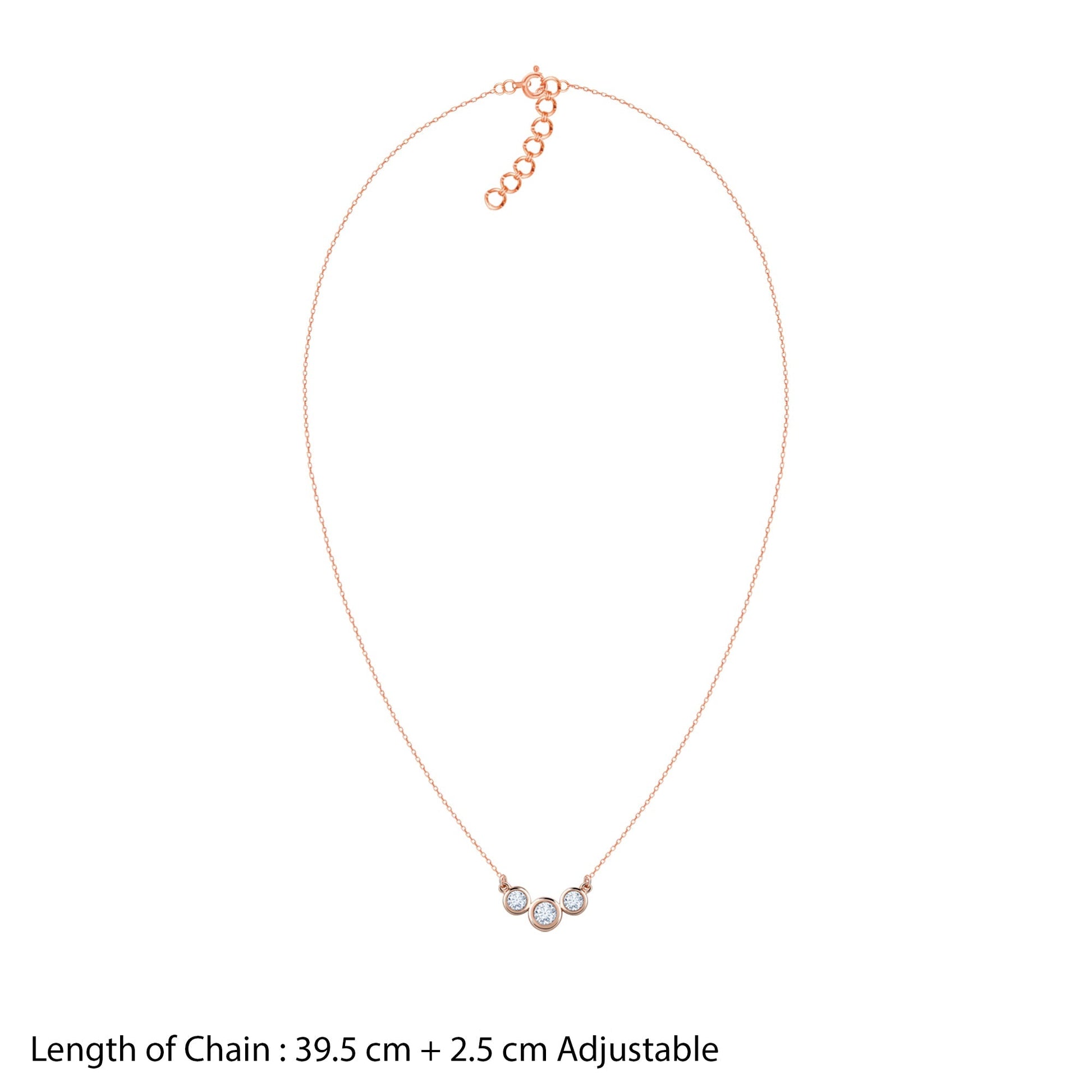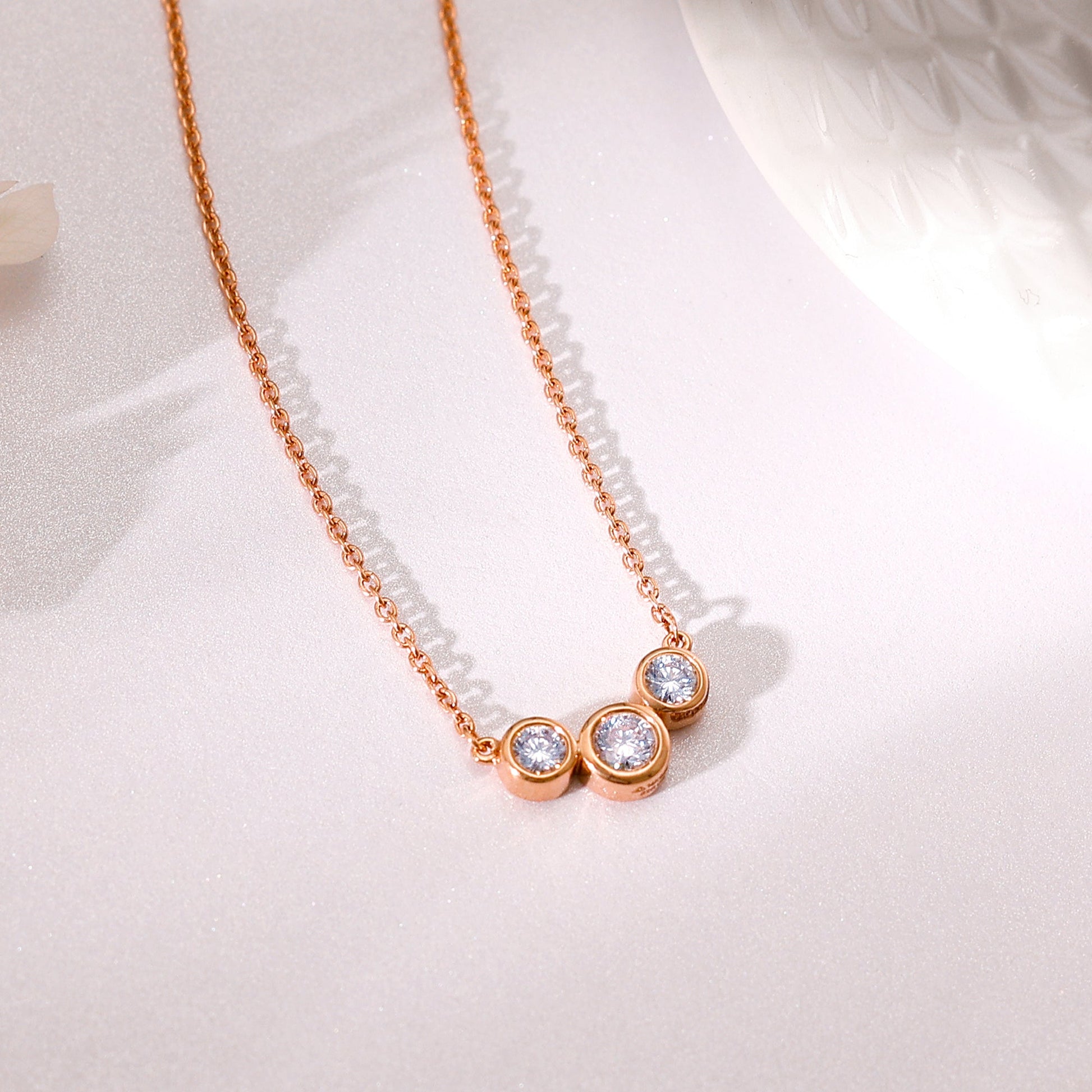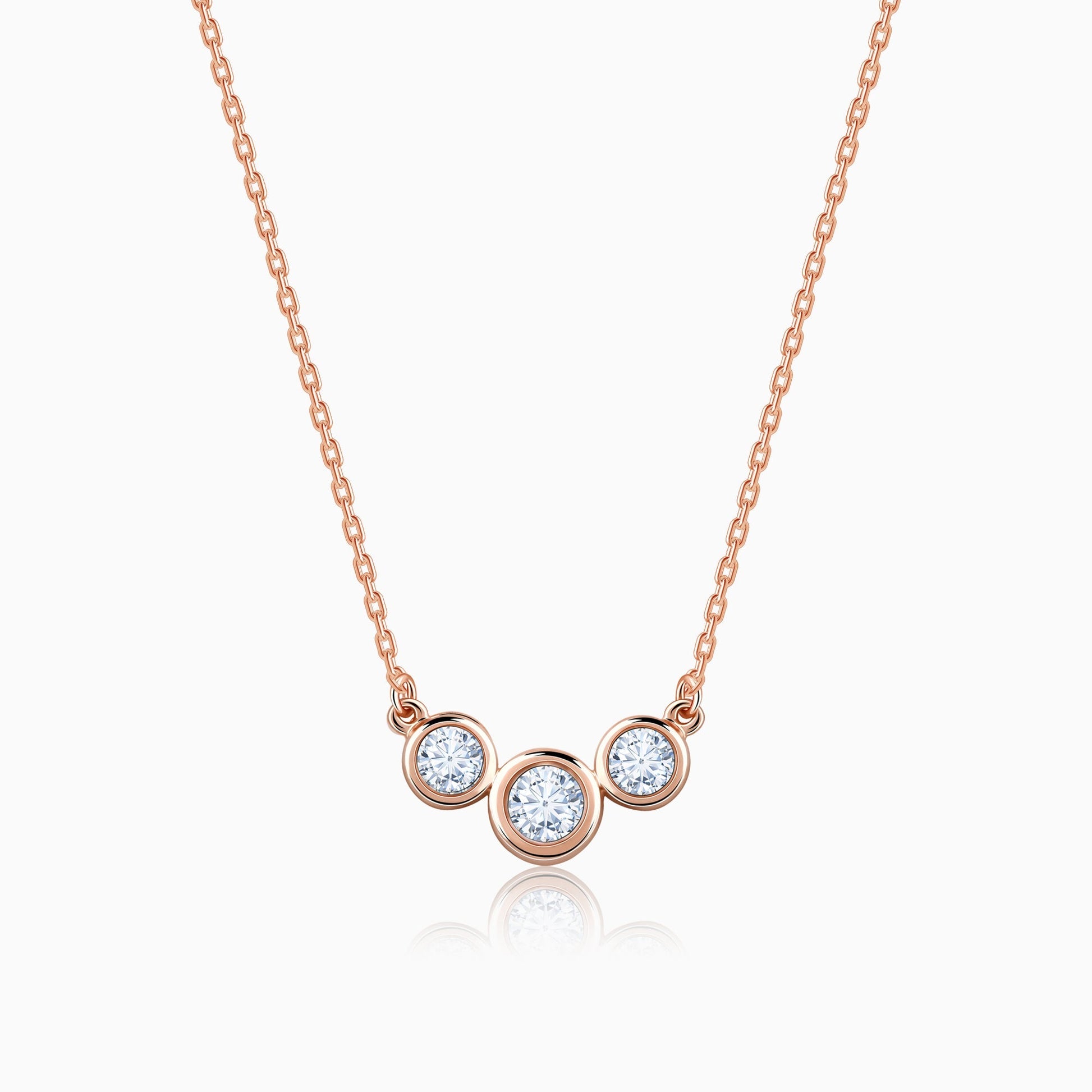 This pure rose gold necklace features a triple-circle motif with diamonds at the centre.