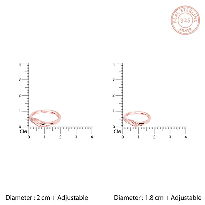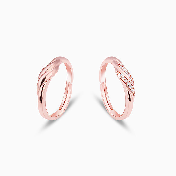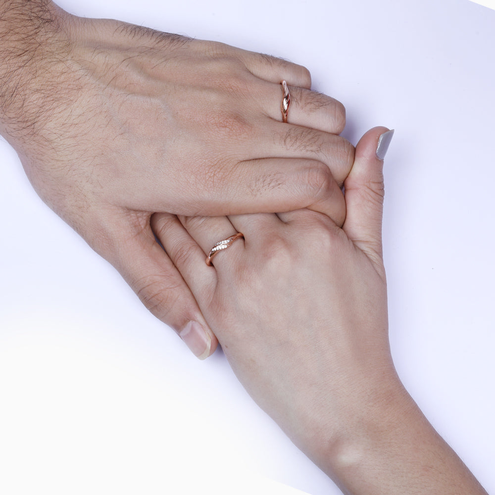 The Rose Gold Couple Goals Ring has the design of a seamless knot being formed in the centre. One of the rings has a few zircons lining up in the centre of the ring.