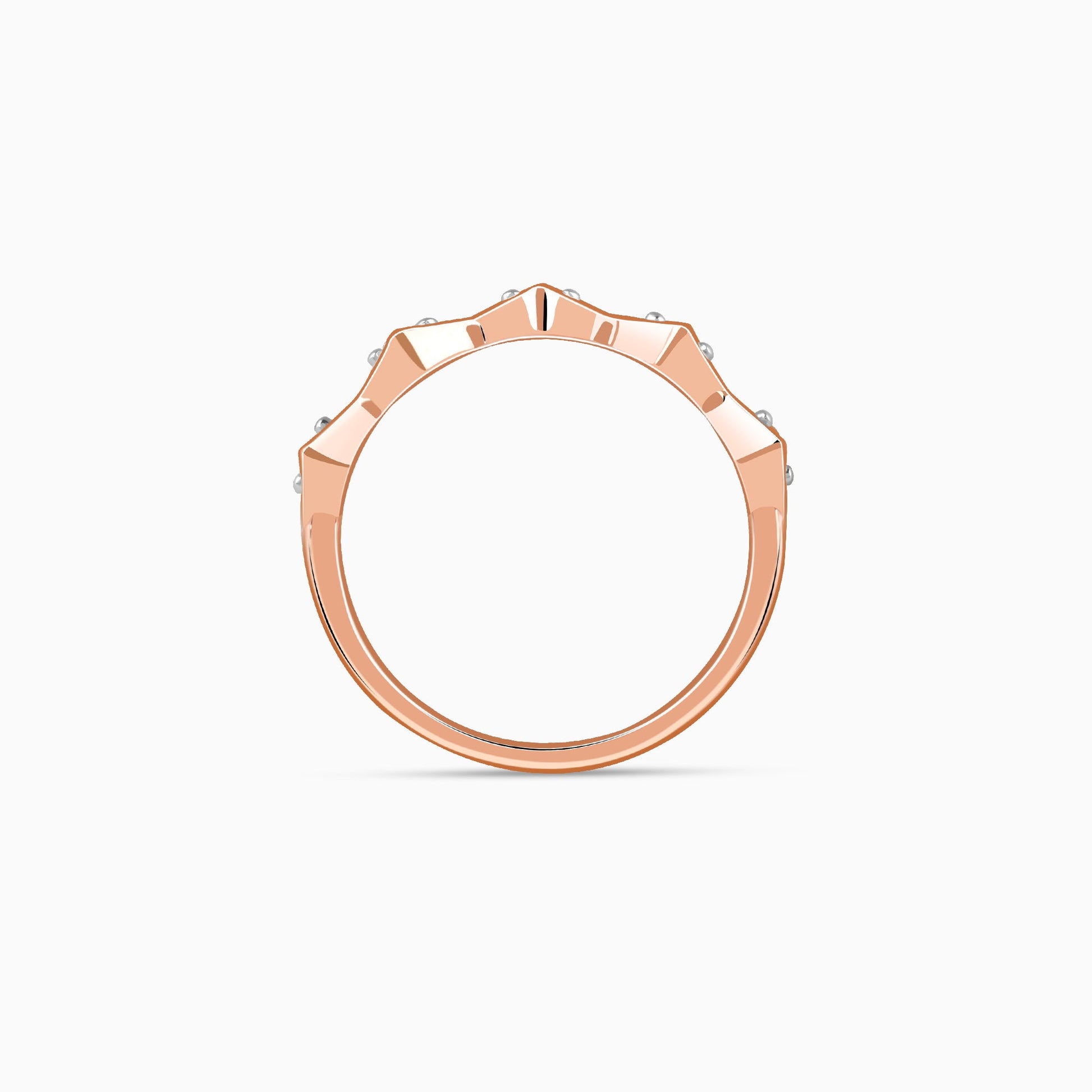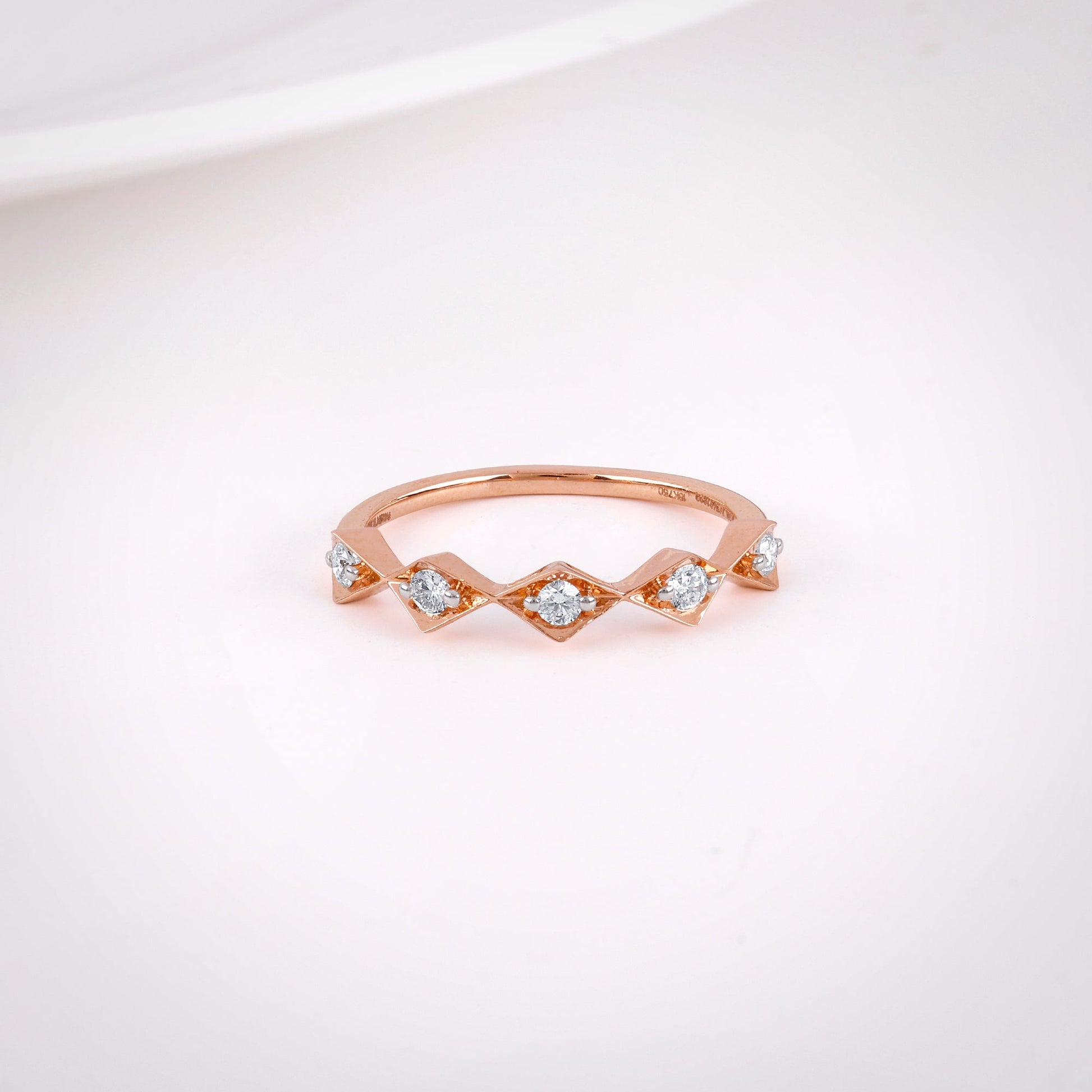 This pure rose gold ring for women features a sleek rhombus design along half of the band. Each rhombus is set with a sparkling lab grown diamond at its centre.