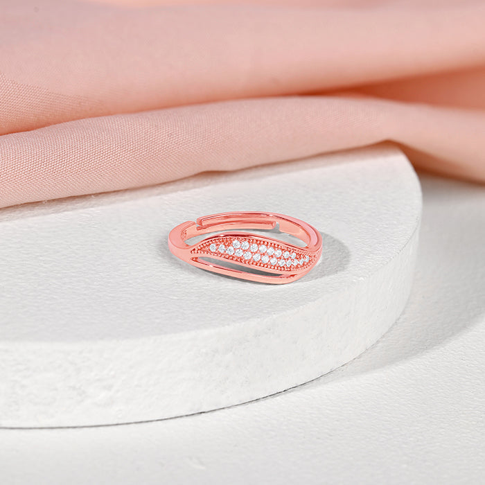 This rose gold ring for women has a layered wave design with one layer studded with zircon.