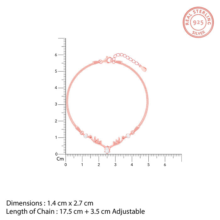 This rose gold bracelet has a deer motif with zircon studded in it.