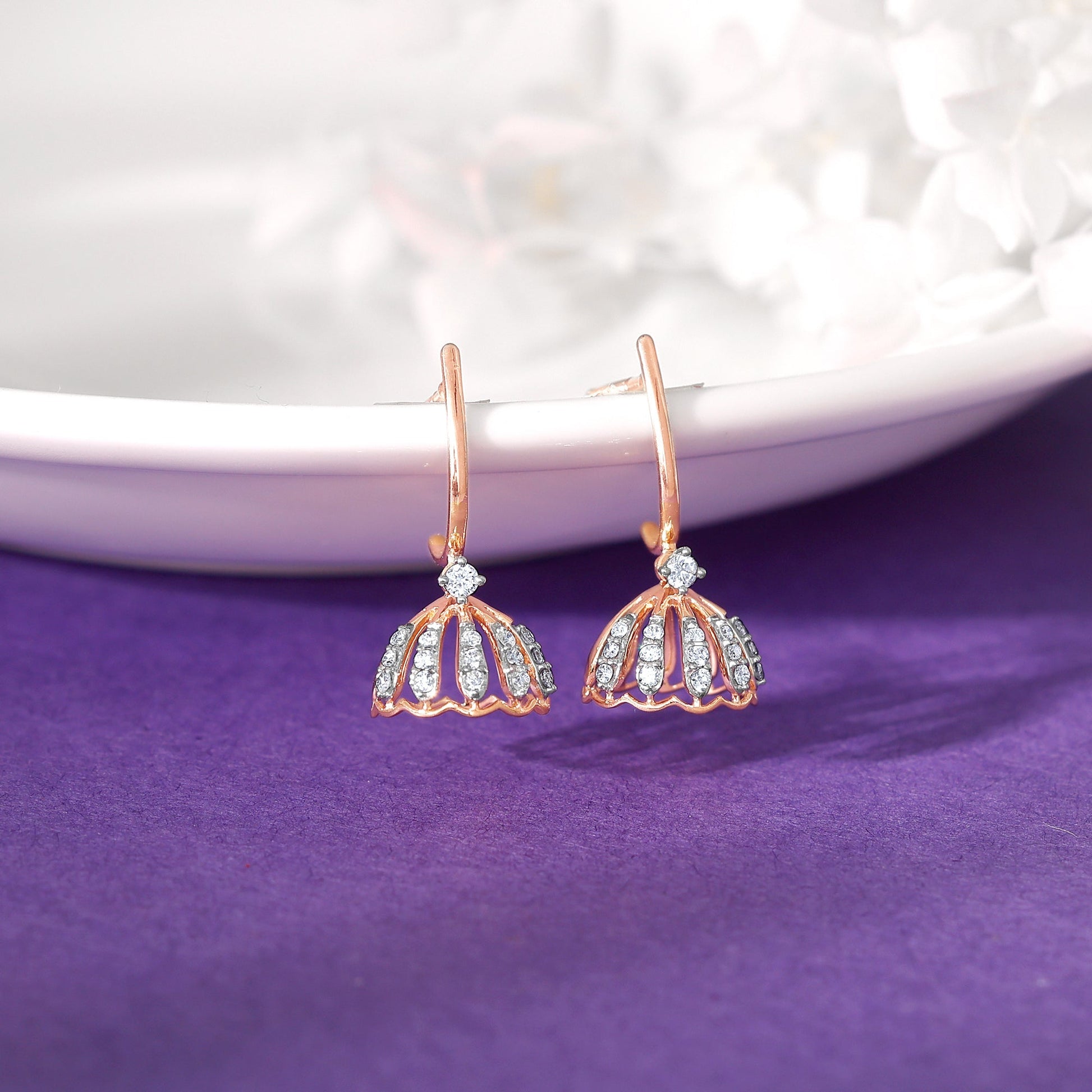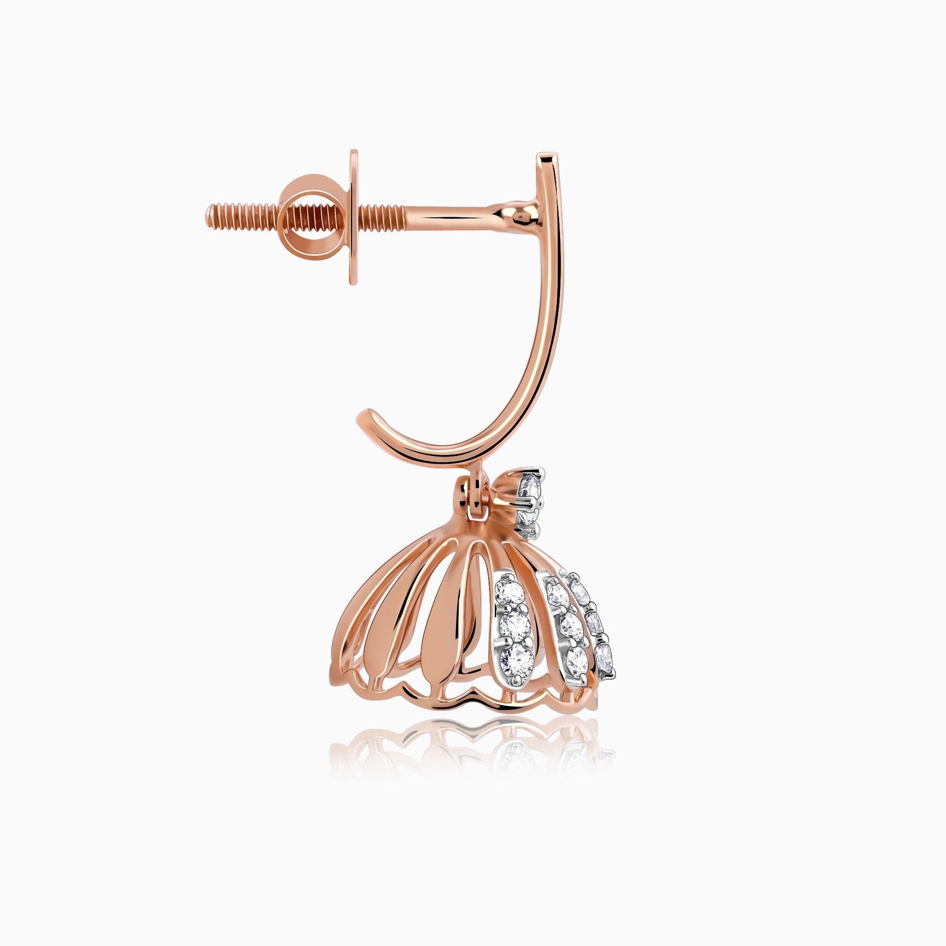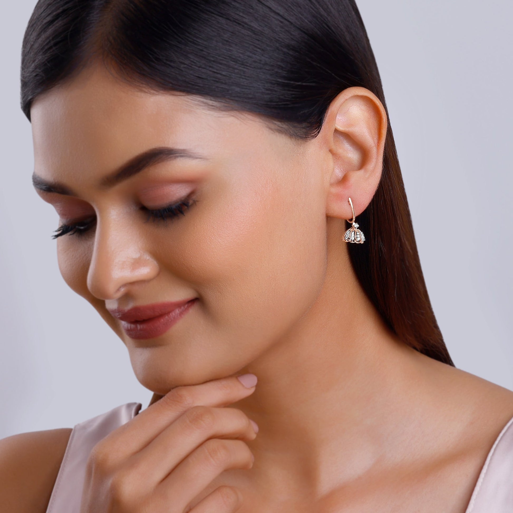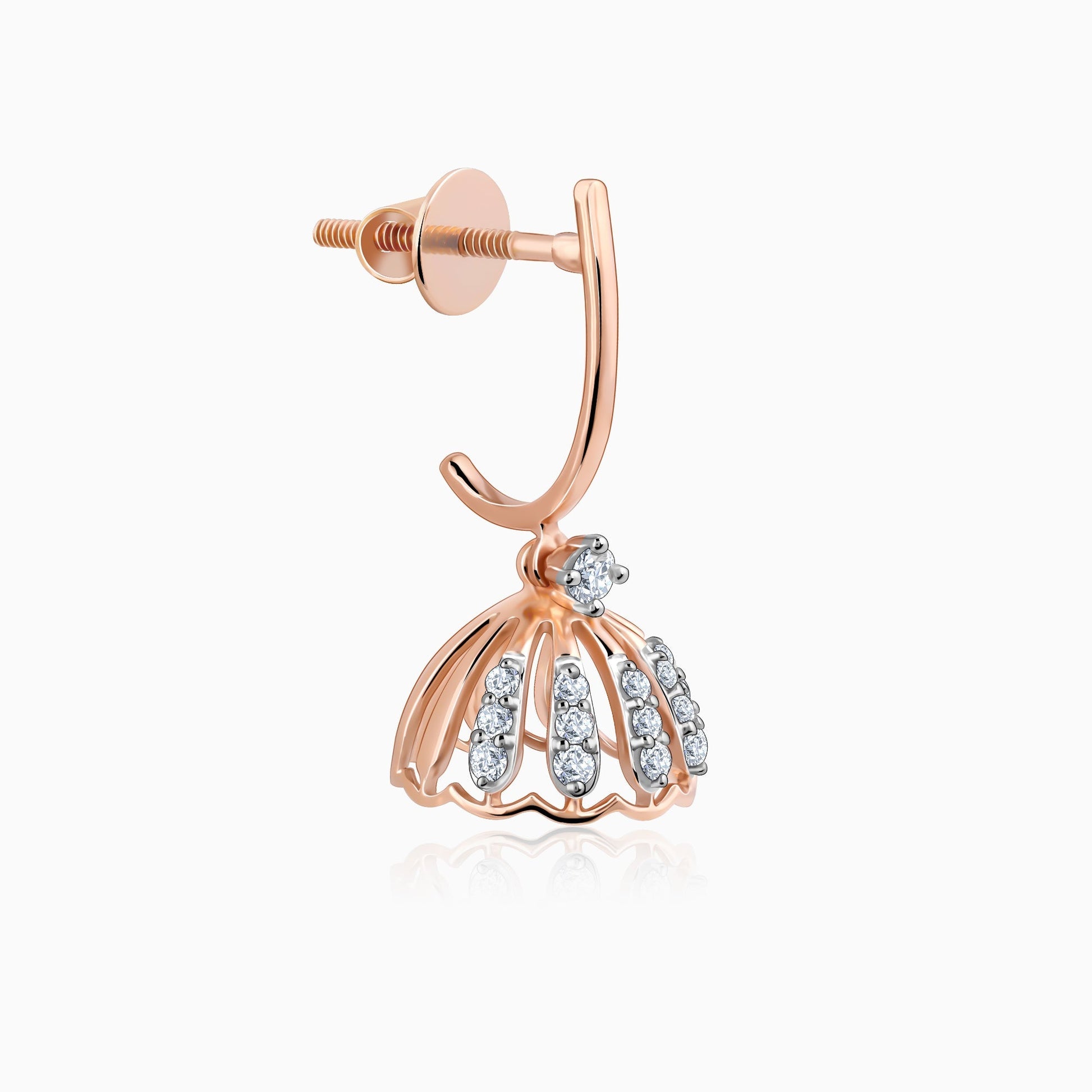 These rose gold earrings feature a classic jhumki design with lab-grown diamonds.