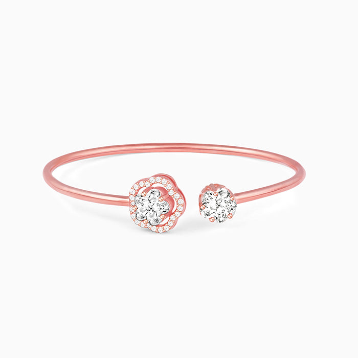 The Rose Gold Dressed Like A Flower Bracelet has a gorgeous design with two beautiful zircon stones in the centre.