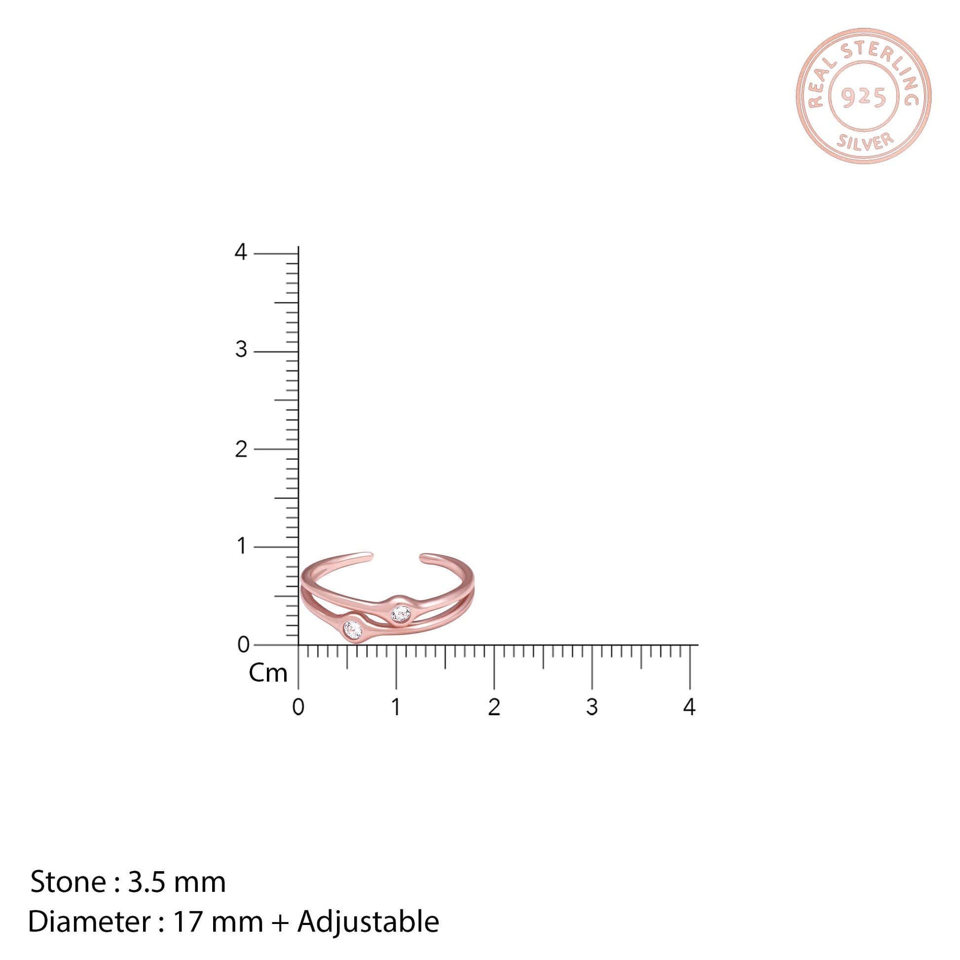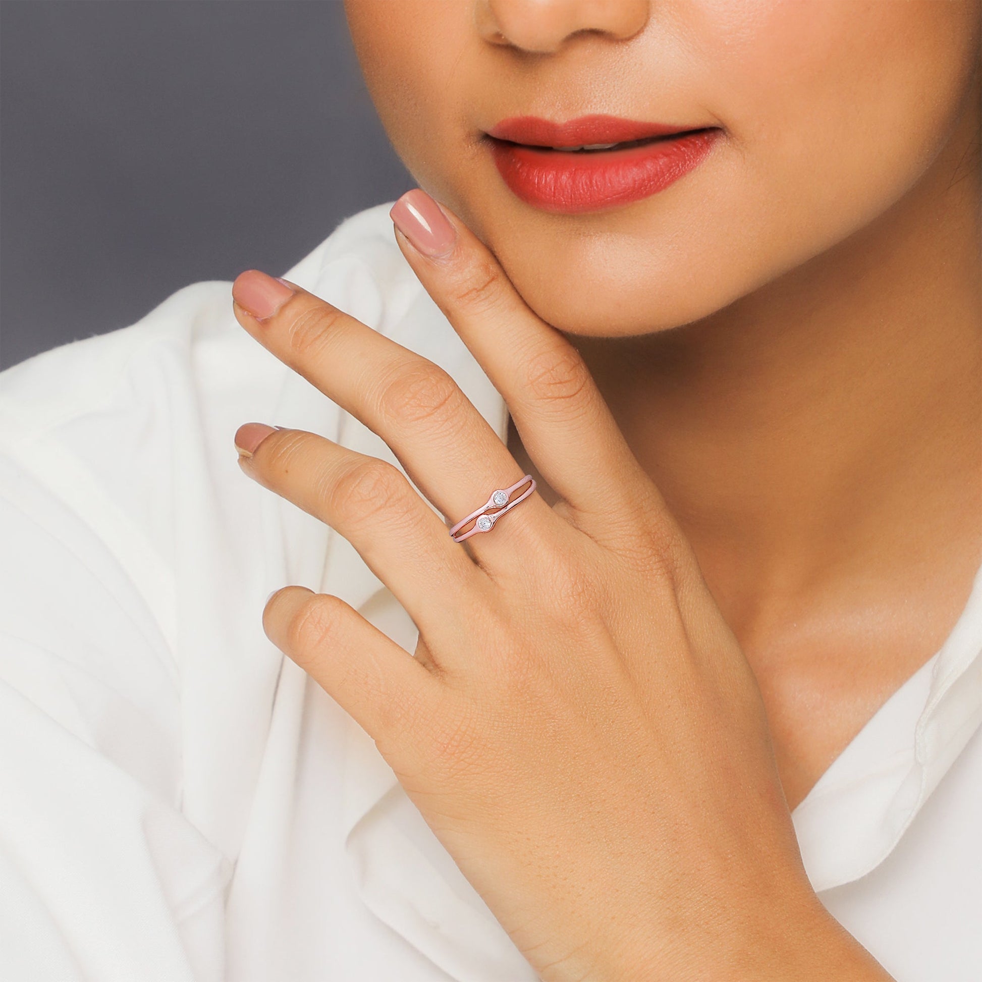 The Rose Gold Dual Feat Ring is all about double the shine, double the reason to celebrate! A perfect Rose-Gold finishing on a double ring-like silhouette and the studded single piece zircons completing the design to perfection!