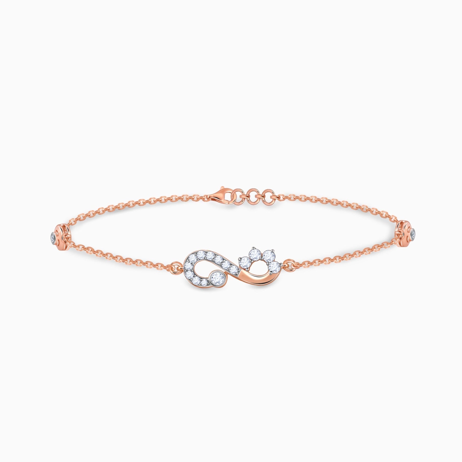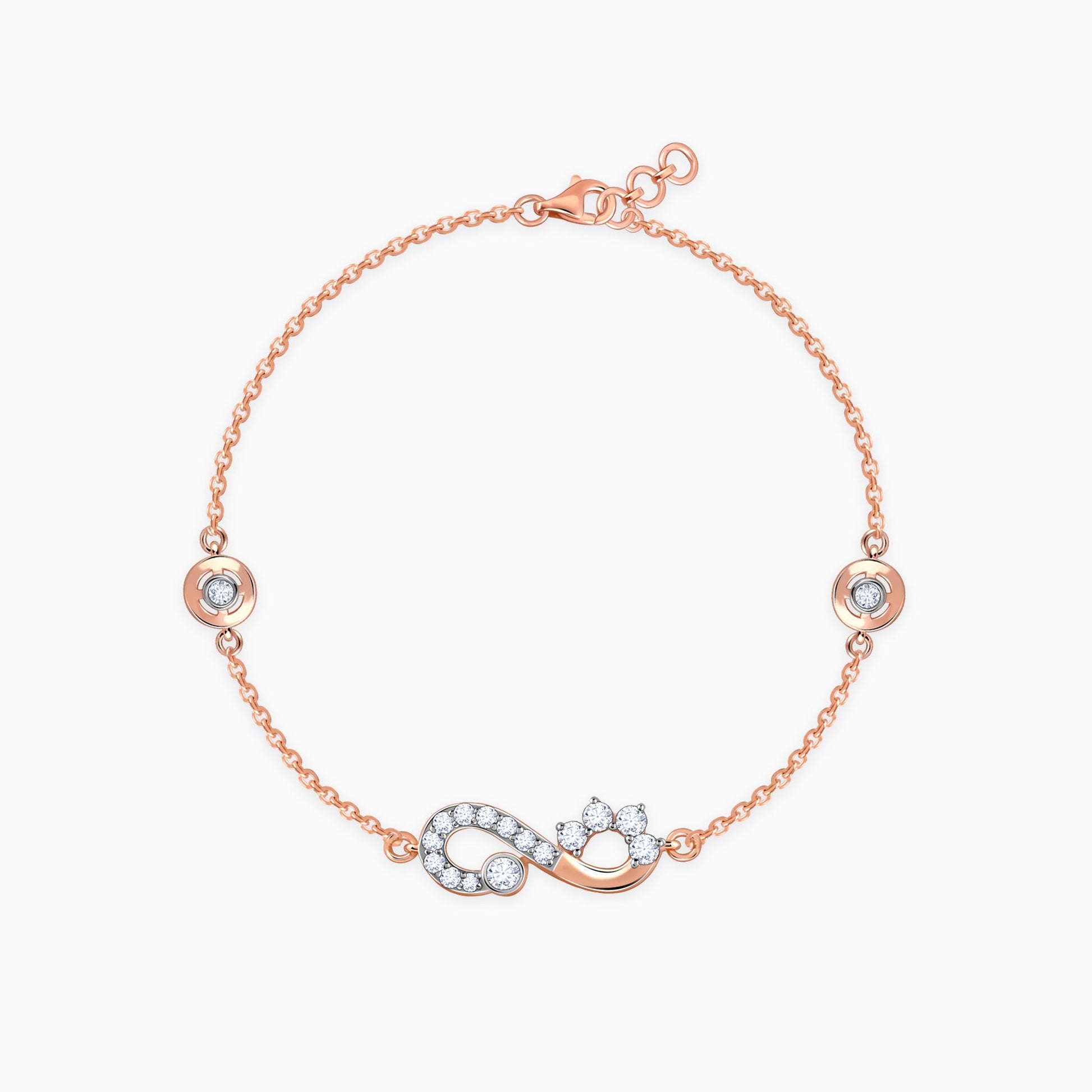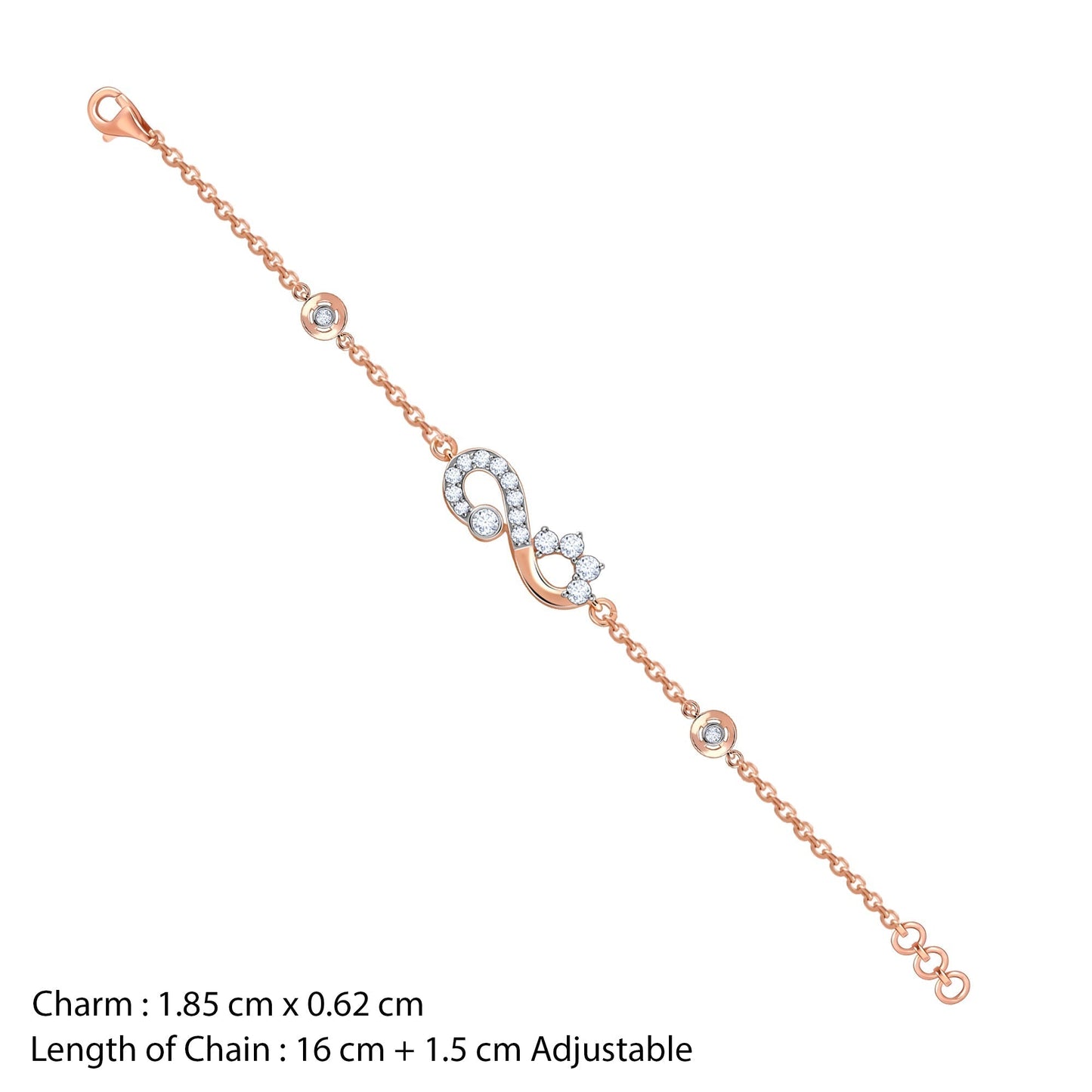 This pure rose gold bracelet features an infinity motif with two gold beads placed across the bracelet.