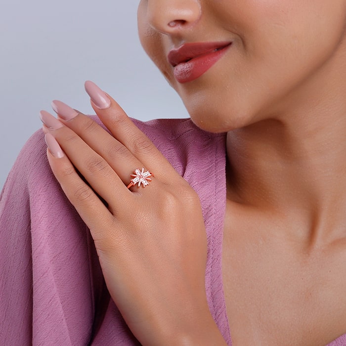 The Rose Gold Floral Dreams Ring is inspired by dreams that are crafted with beautiful flowers, radiating hope of a new day's blossoming surprise!