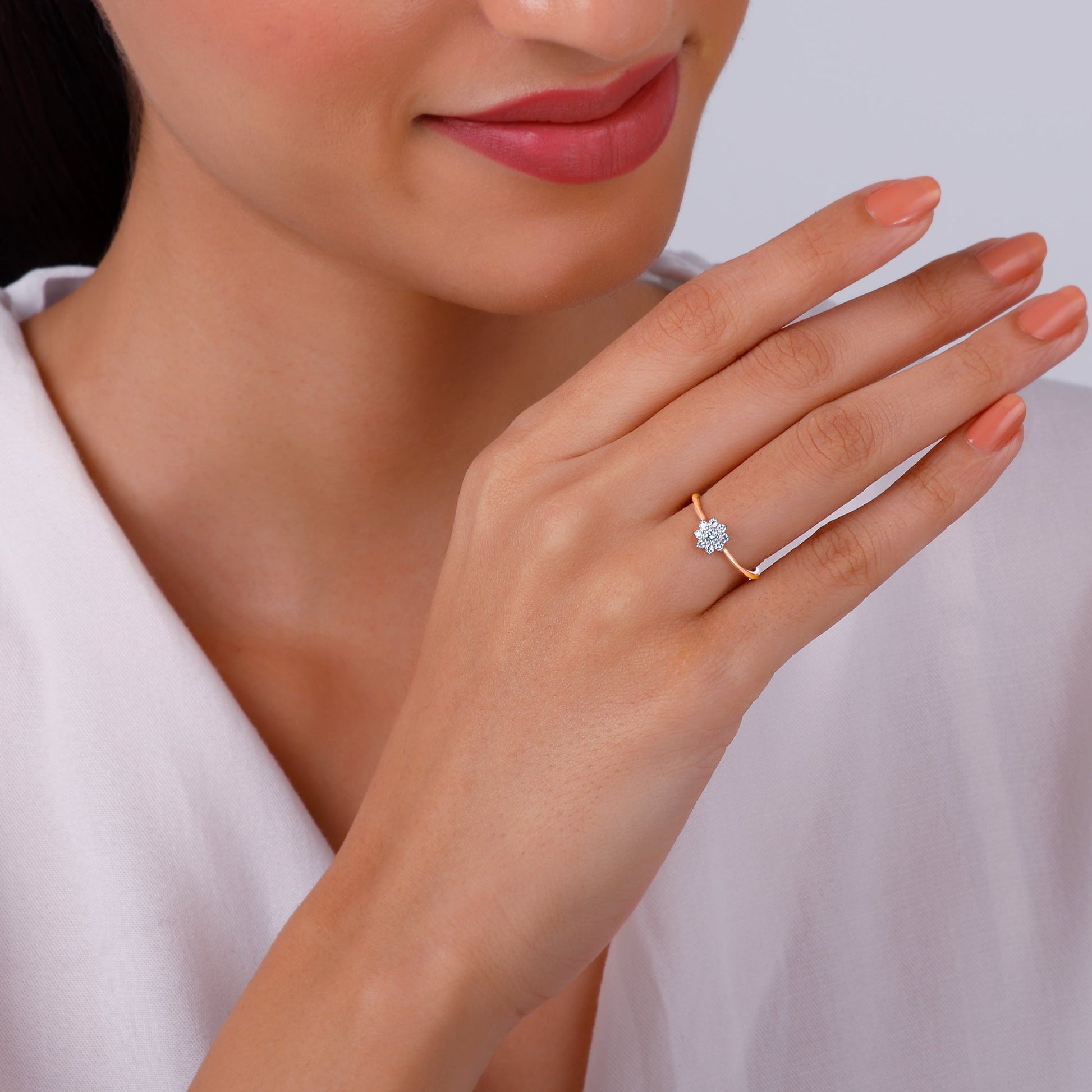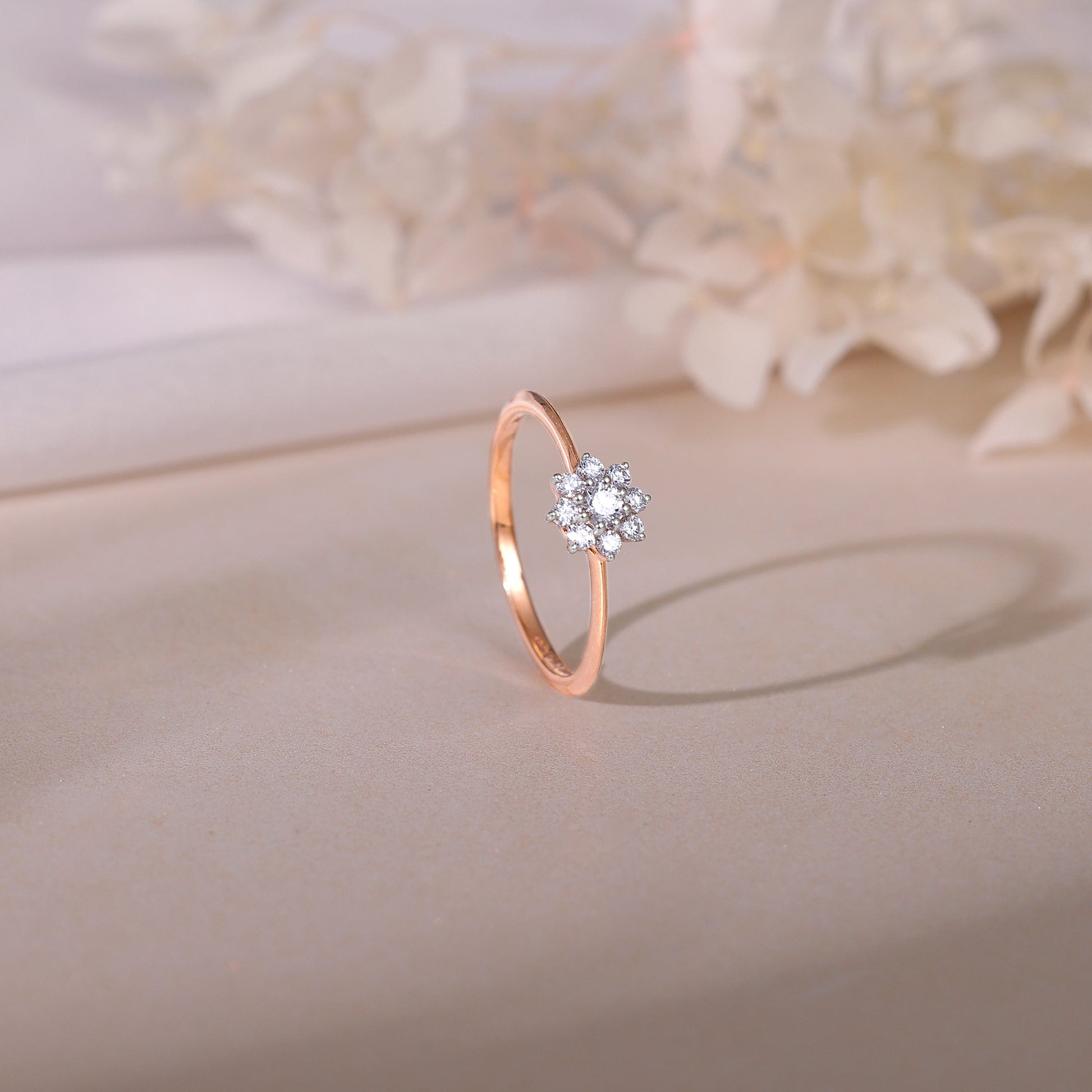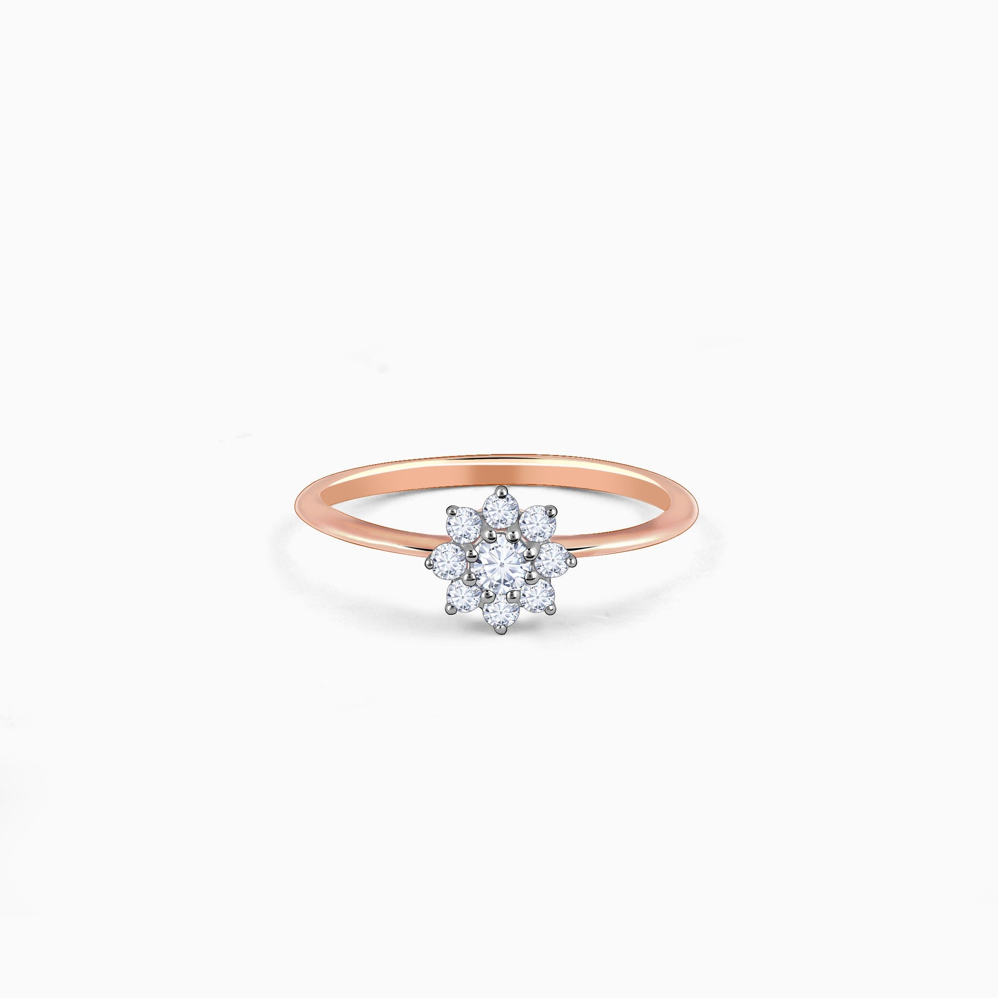 This pure rose gold ring features a flower motif studded with lab-grown diamonds.