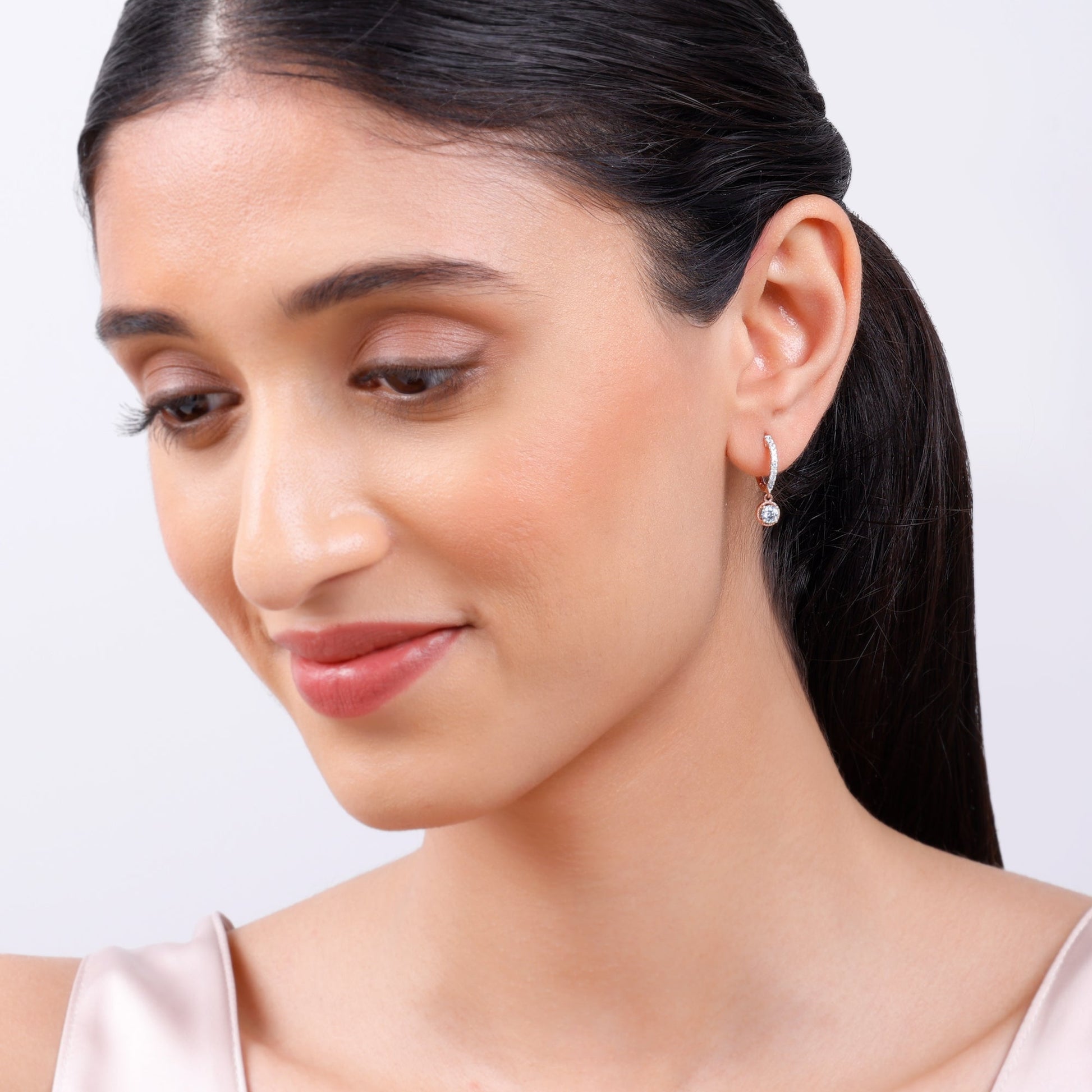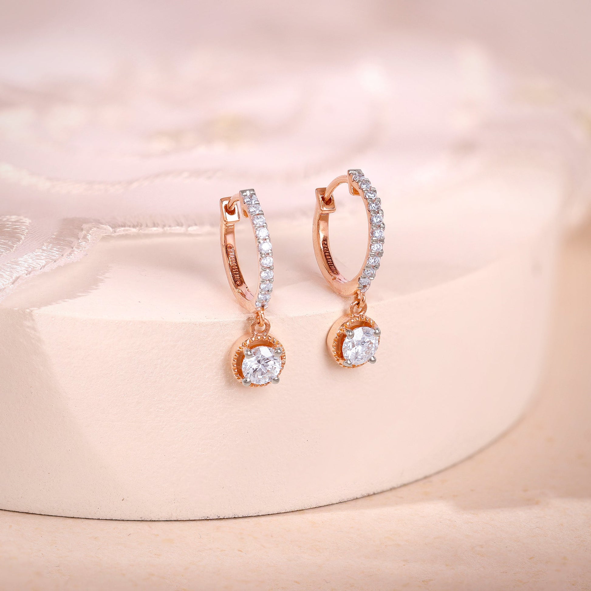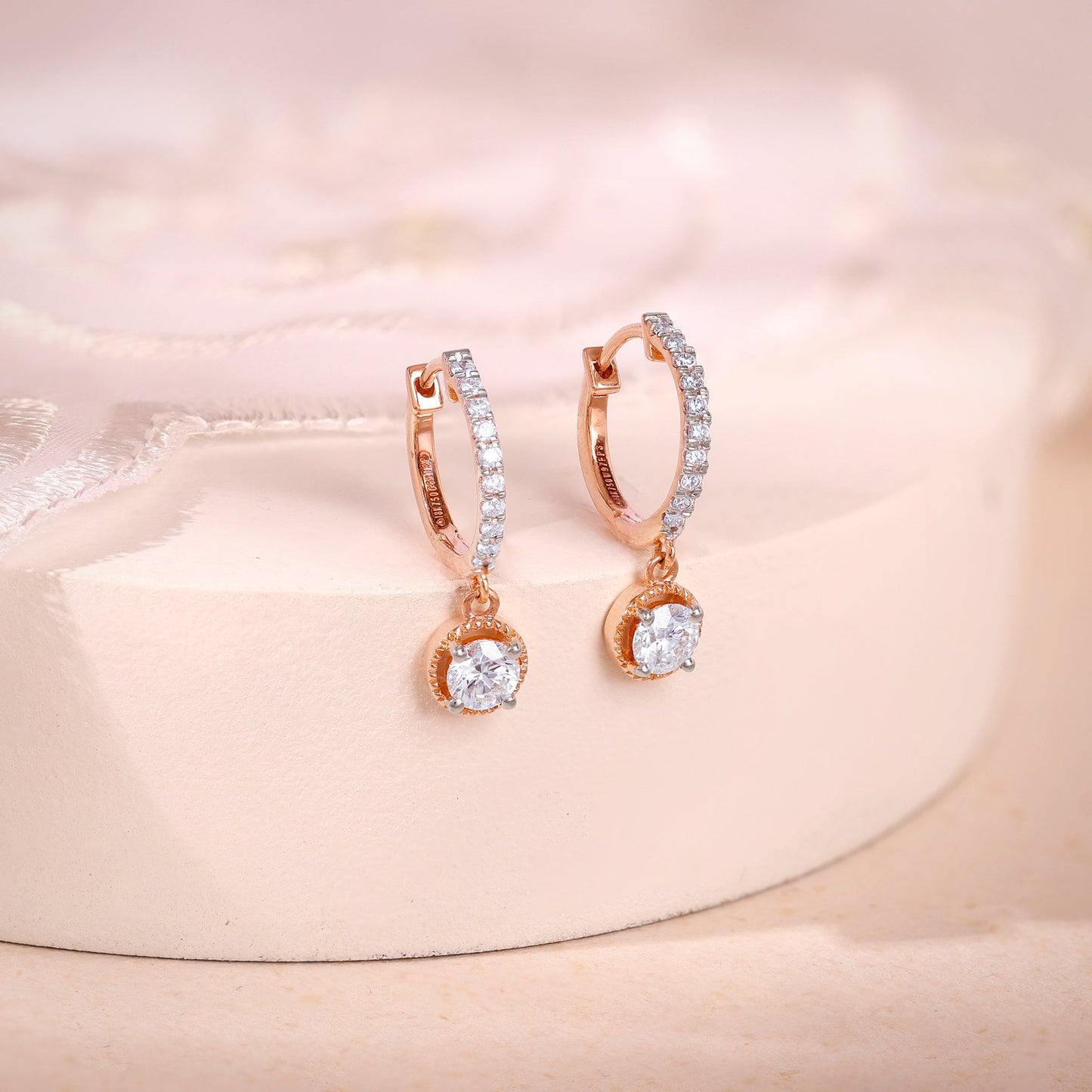 Rose Gold Glittering Solitaire Diamond Drop Earrings