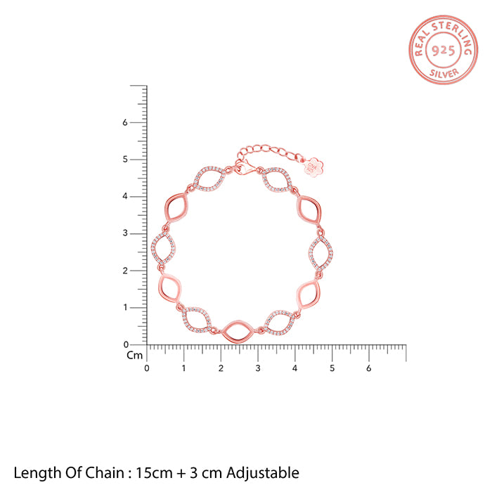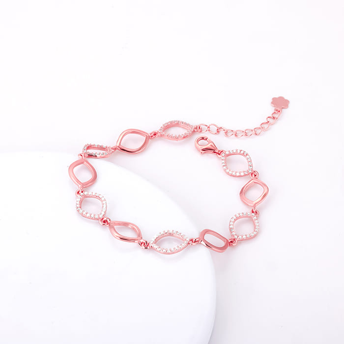 This rose gold bracelet features oval motifs with zircons set in alternating ovals.