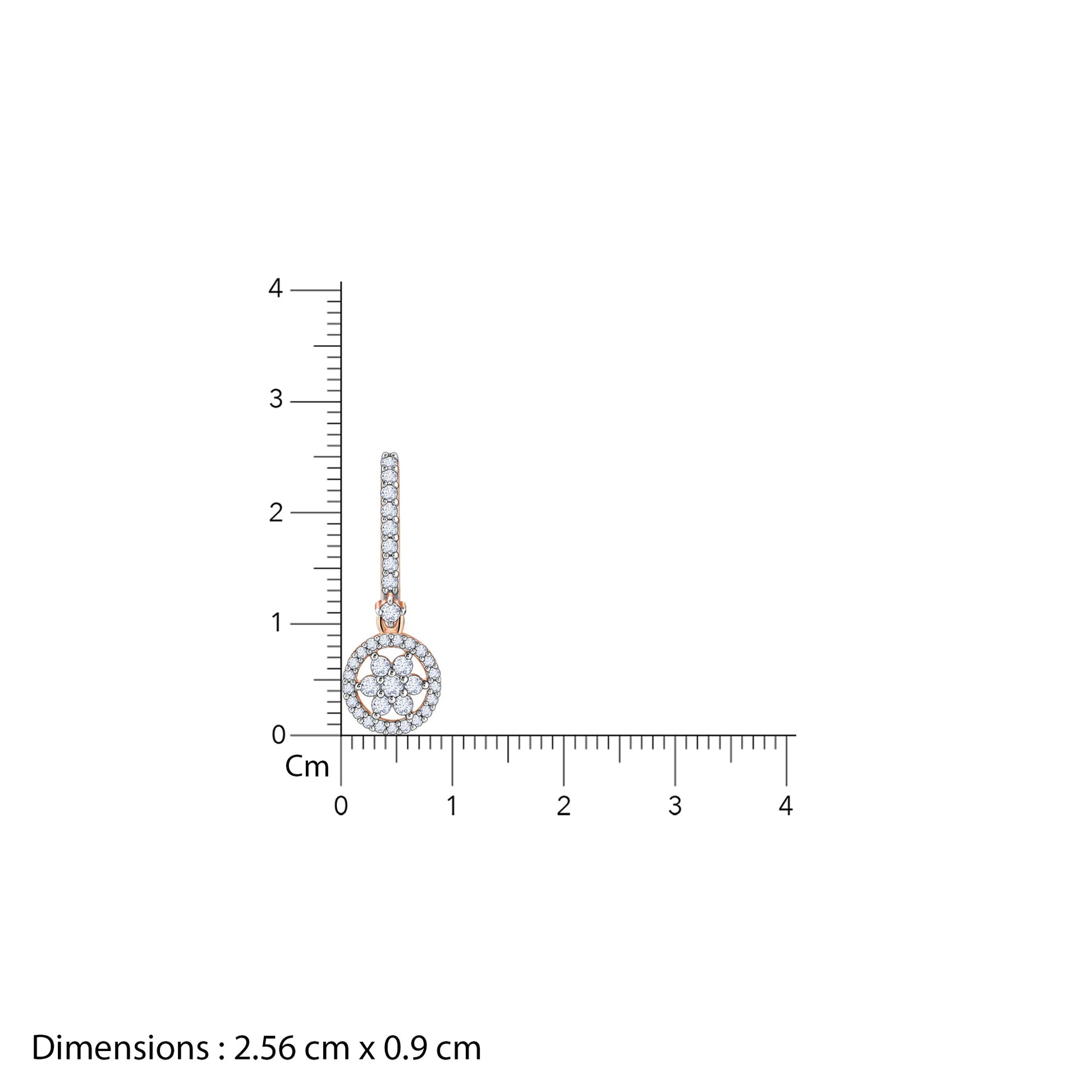 This pair of pure rose gold earrings features a drop design studded with diamonds on the upper dangle and around the centre lab diamond.