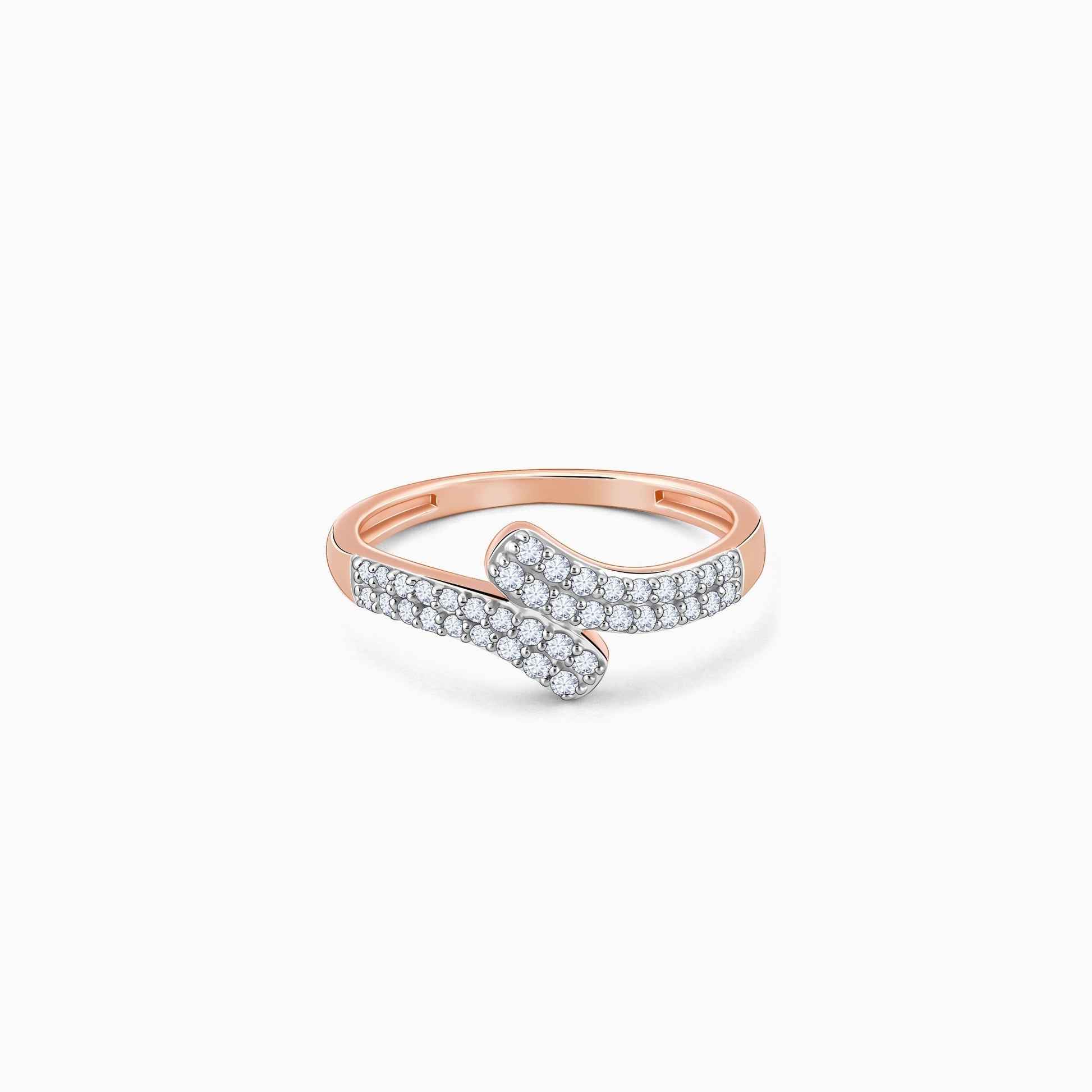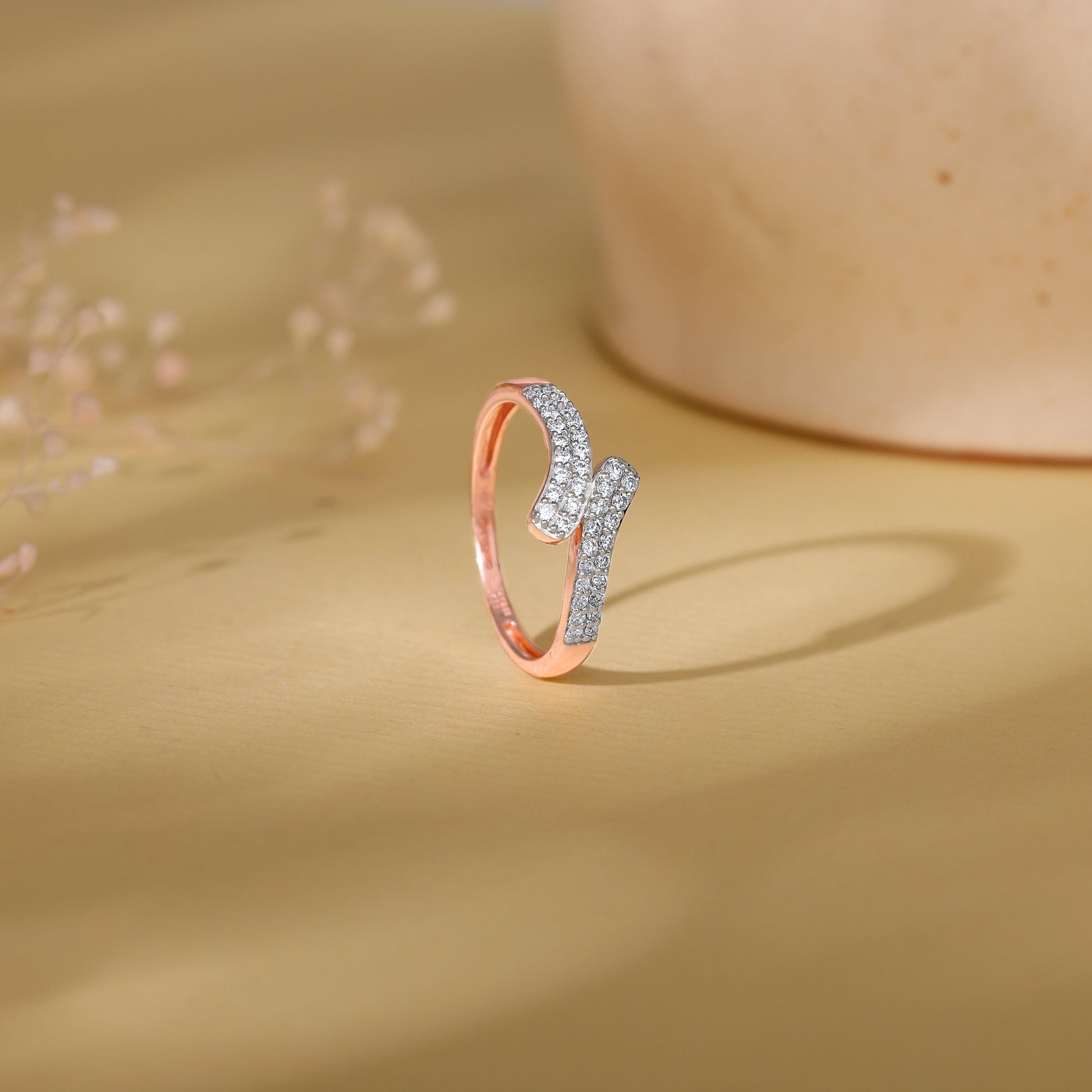 This pure rose gold ring features an open design with asymmetric ends studded with lab diamonds.