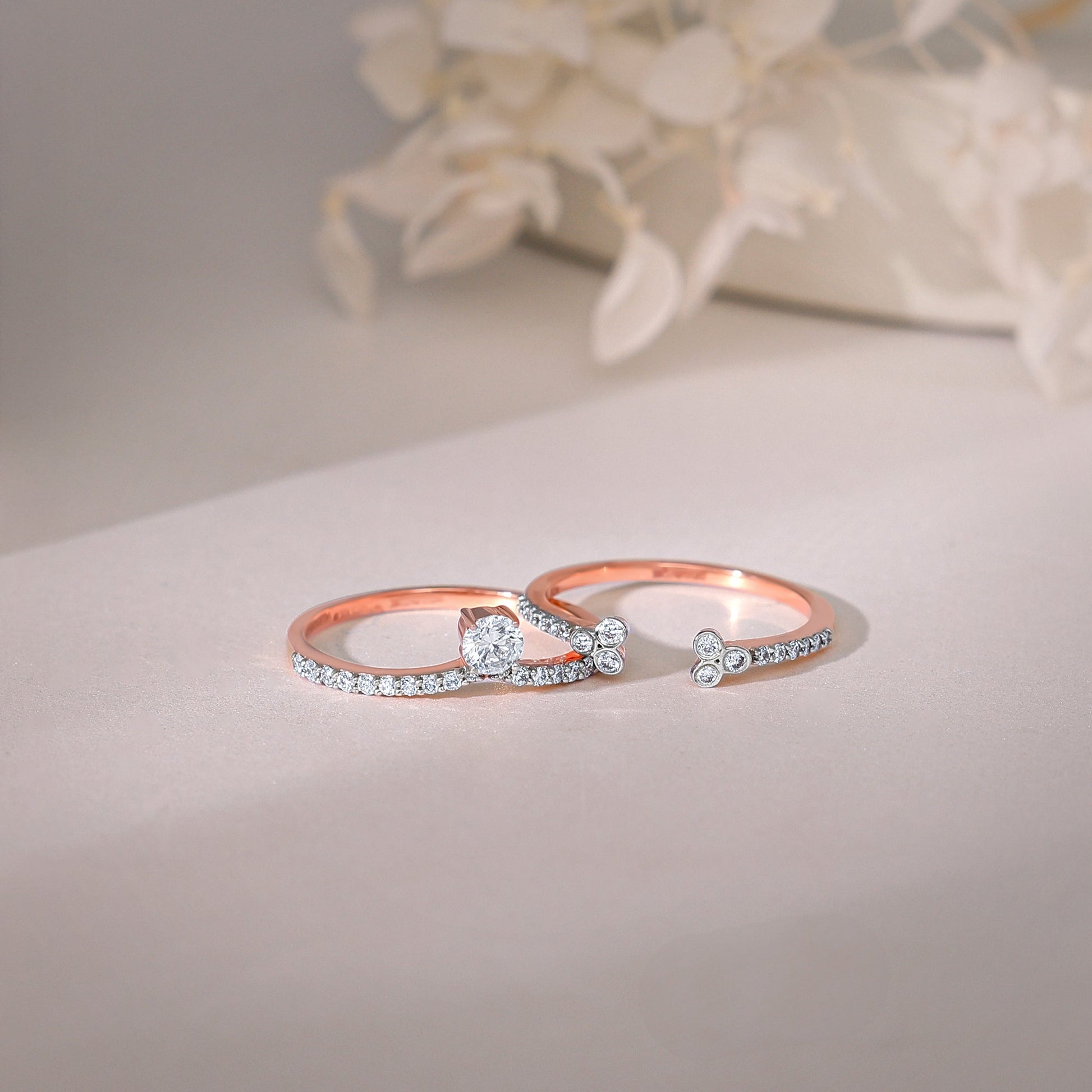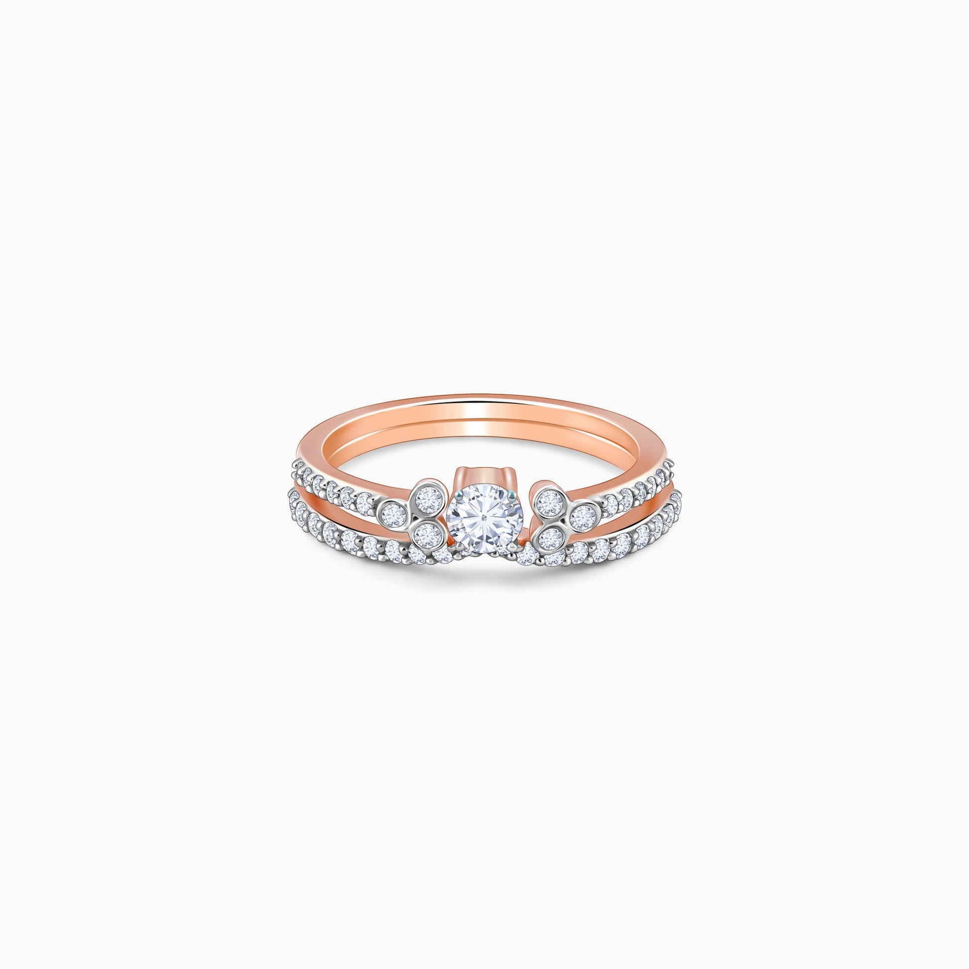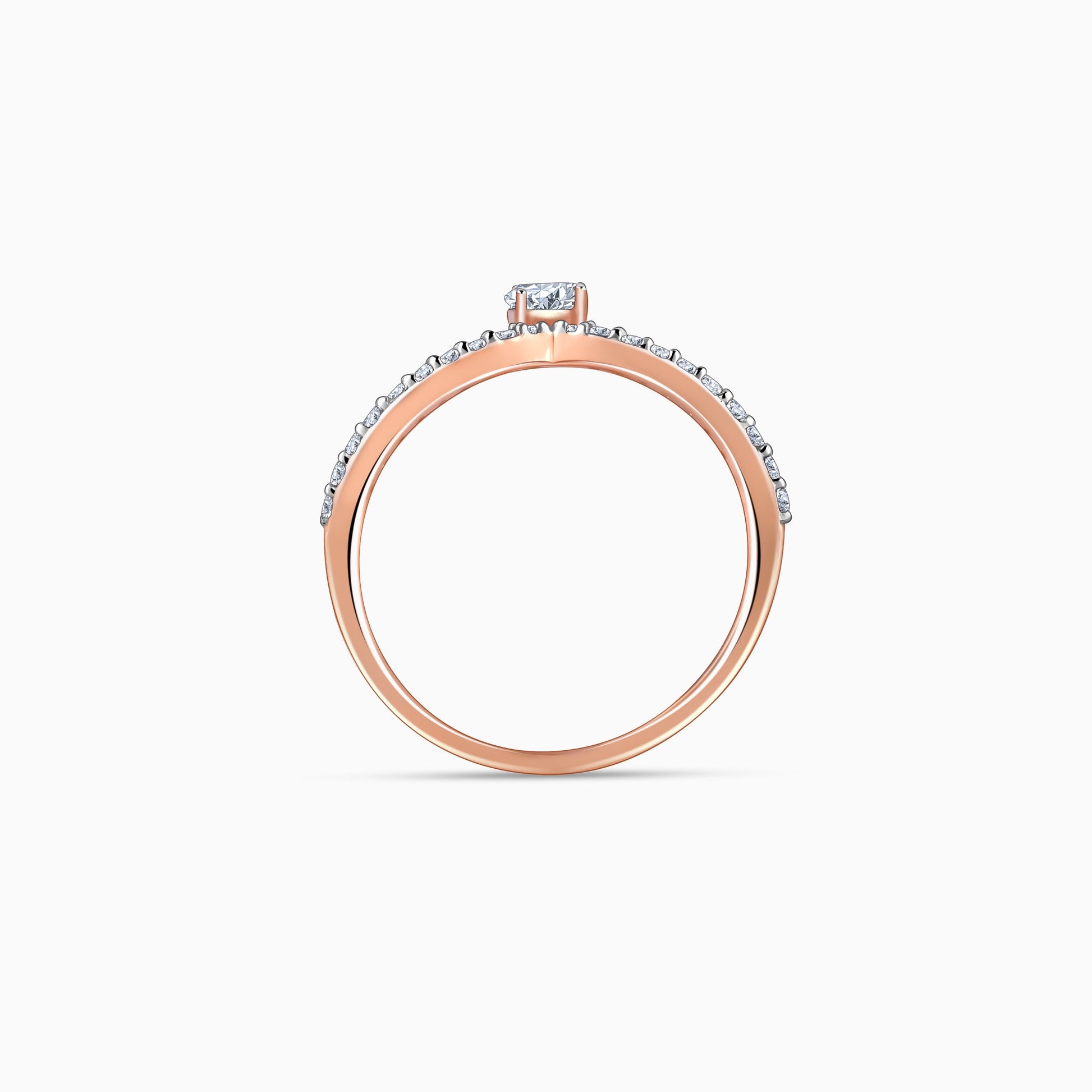 This pure rose gold ring for women features a double-band design with lab-grown diamonds studded on it.