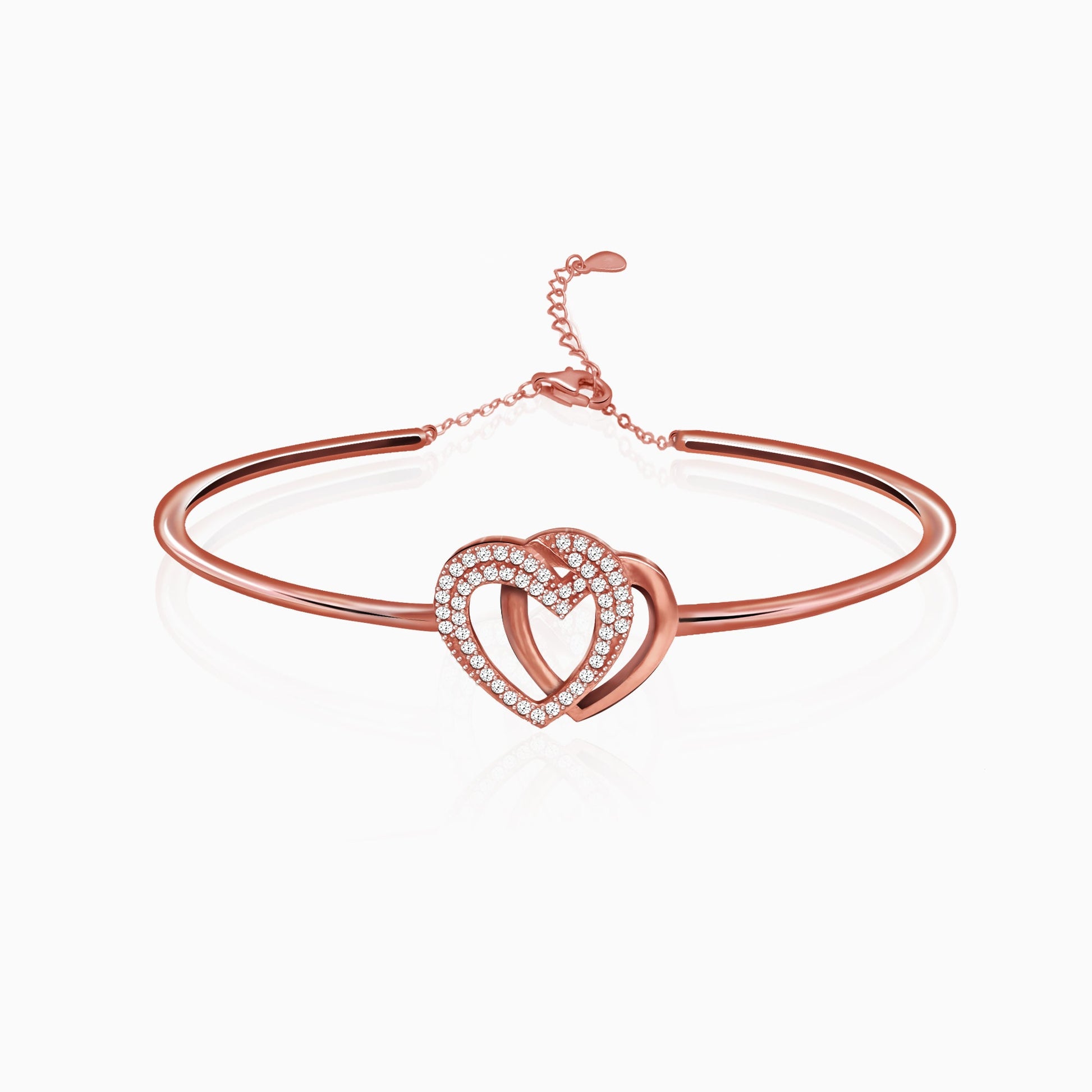 Rose Gold Interlocked Heart Duo Bracelet