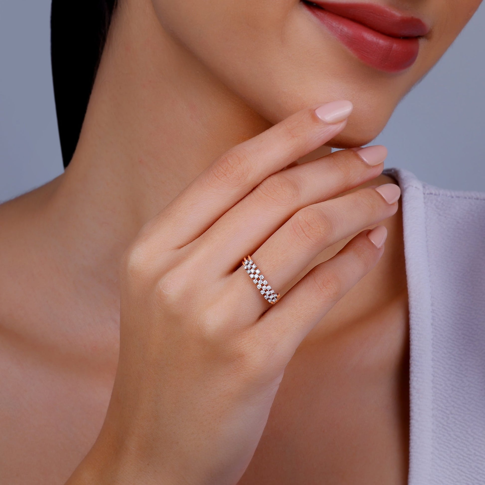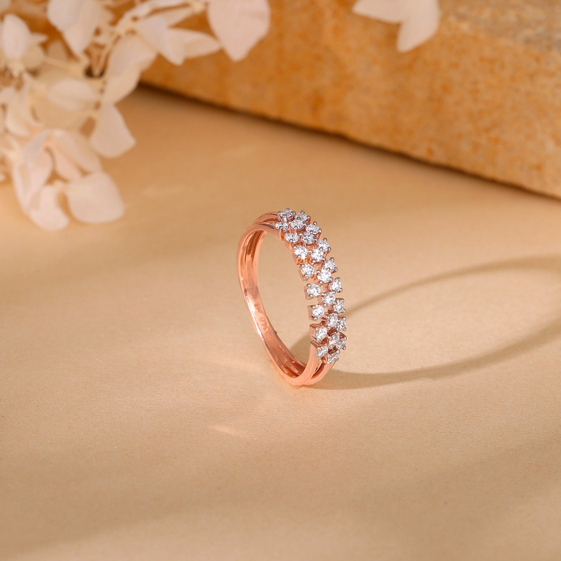 A stunning rose gold ring with lab-grown diamonds held in an elegant setting.