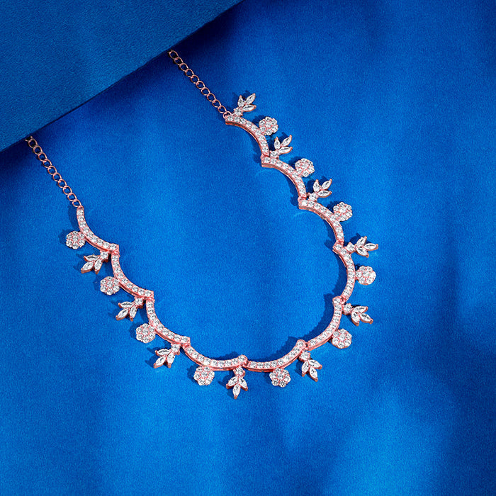 This rose gold necklace for women showcases a striking pattern of alternating square and circular motifs, each encrusted with shimmering stones. The meticulous arrangement creates a seamless flow of sparkle and symmetry across the neckline. Presenting our DIVA Collection - a limited edition silver jewellery meant for the women who own every room. Be the star of the party, always.