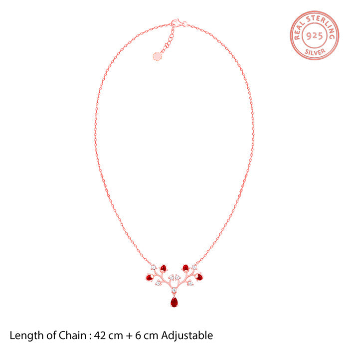 This rose gold necklace features V-design studded with zircons and red cabochon stones. Celebrate your moments of passion with Trendy Freak’s Red Romance Collection.