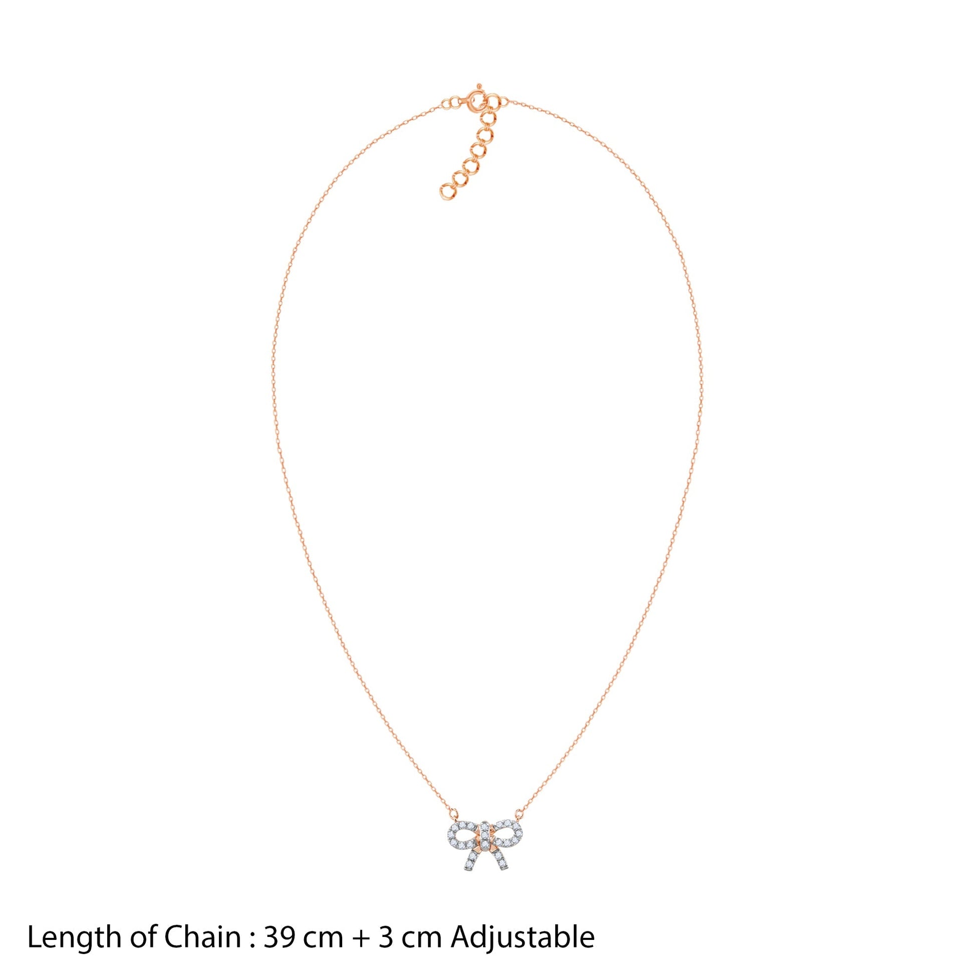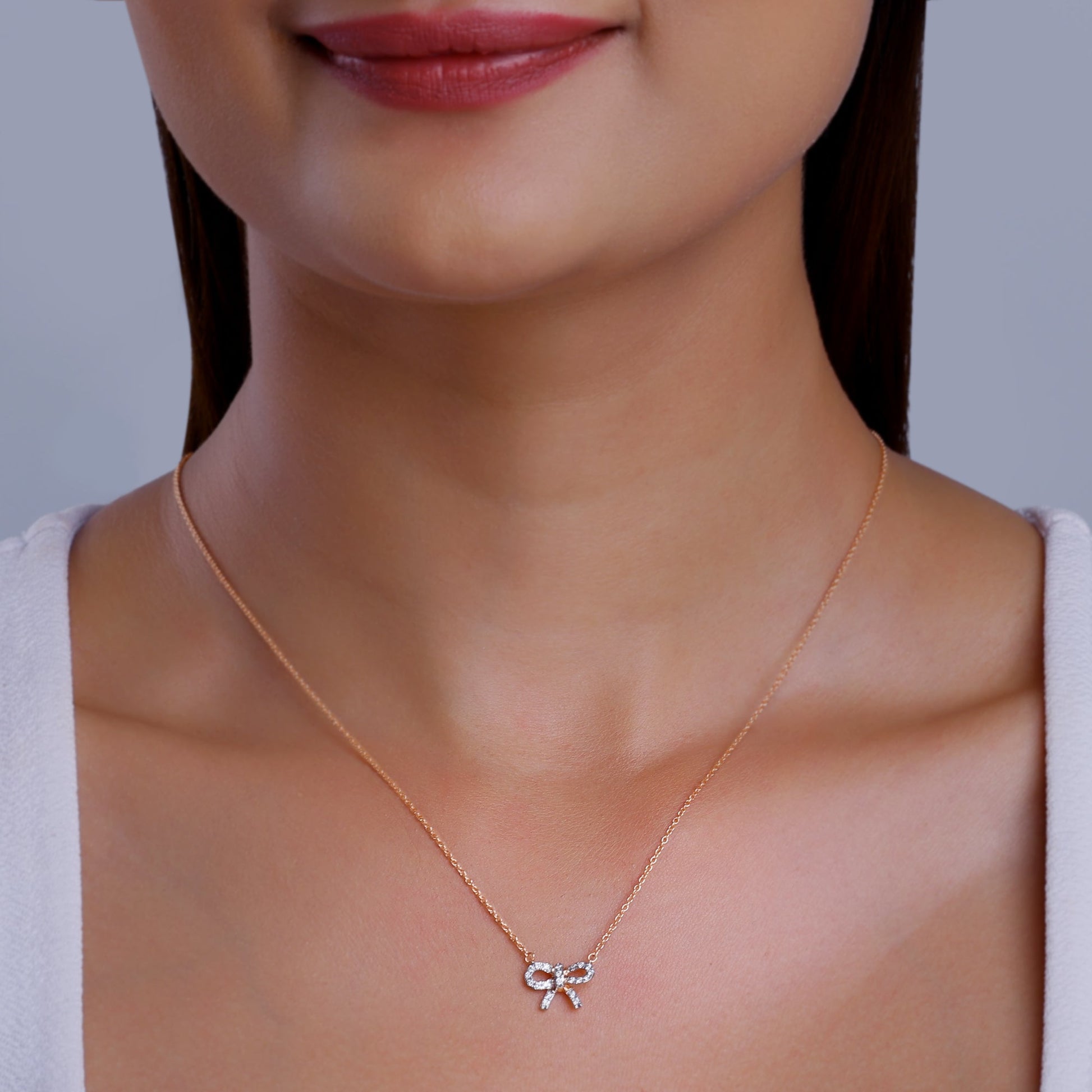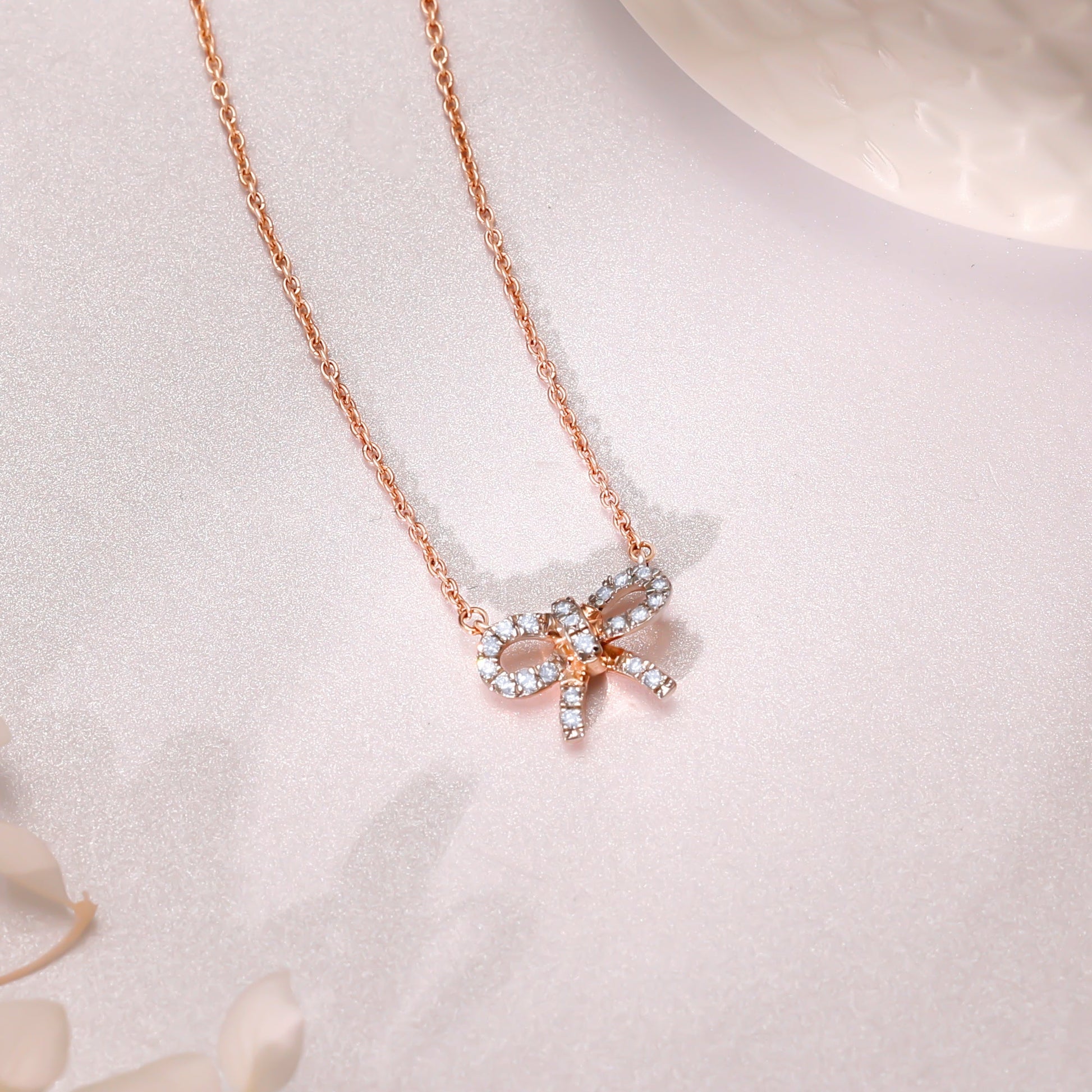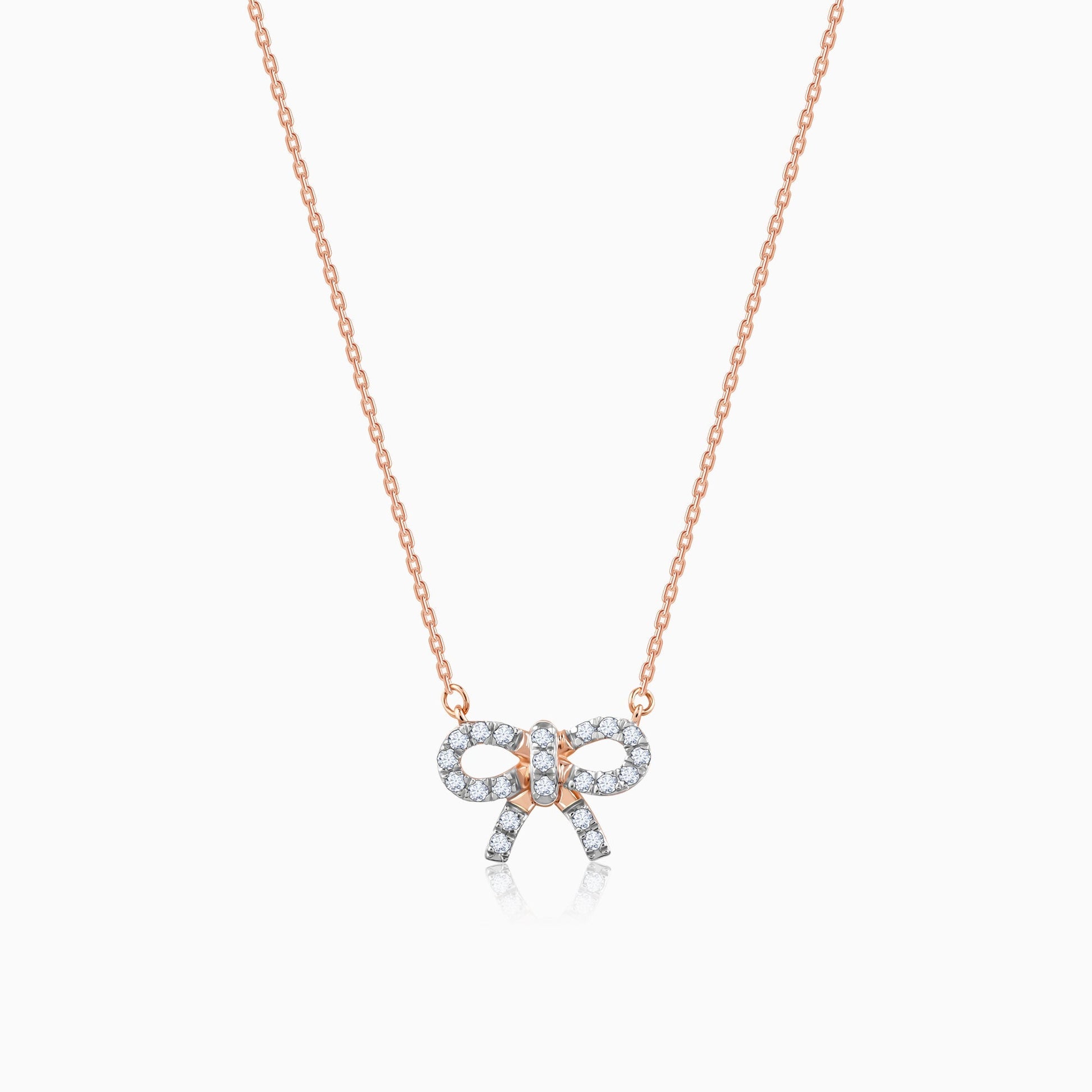 This pure rose gold necklace features a bow design studded with lab-grown diamonds.