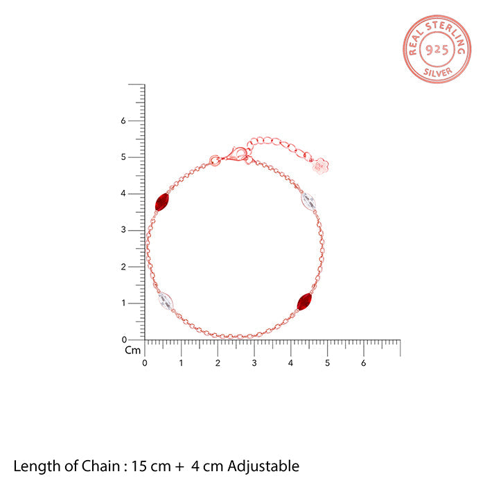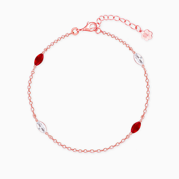 This rose gold bracelet features four oval motifs, with two showcasing red-coloured stones and the other two adorned with zircons, placed alternately. Celebrate your moments of passion with Trendy Freak’s Red Romance Collection.