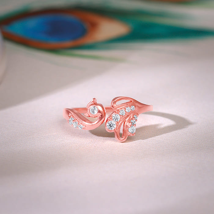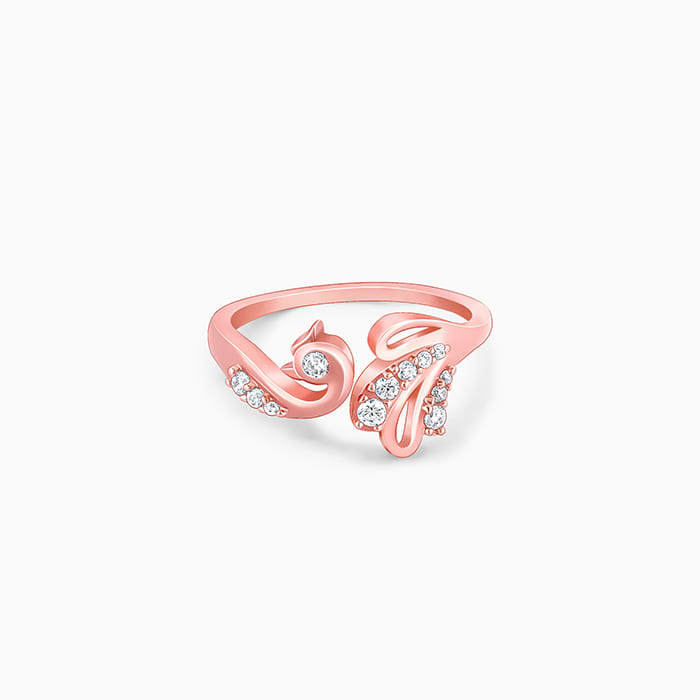 This rose gold open ring features a peacock motif studded with zircons. Celebrate the timeless beauty of Indian textiles with Trendy Freak's latest 'Magic of Tradition' collection. Wear and celebrate tradition, anytime.