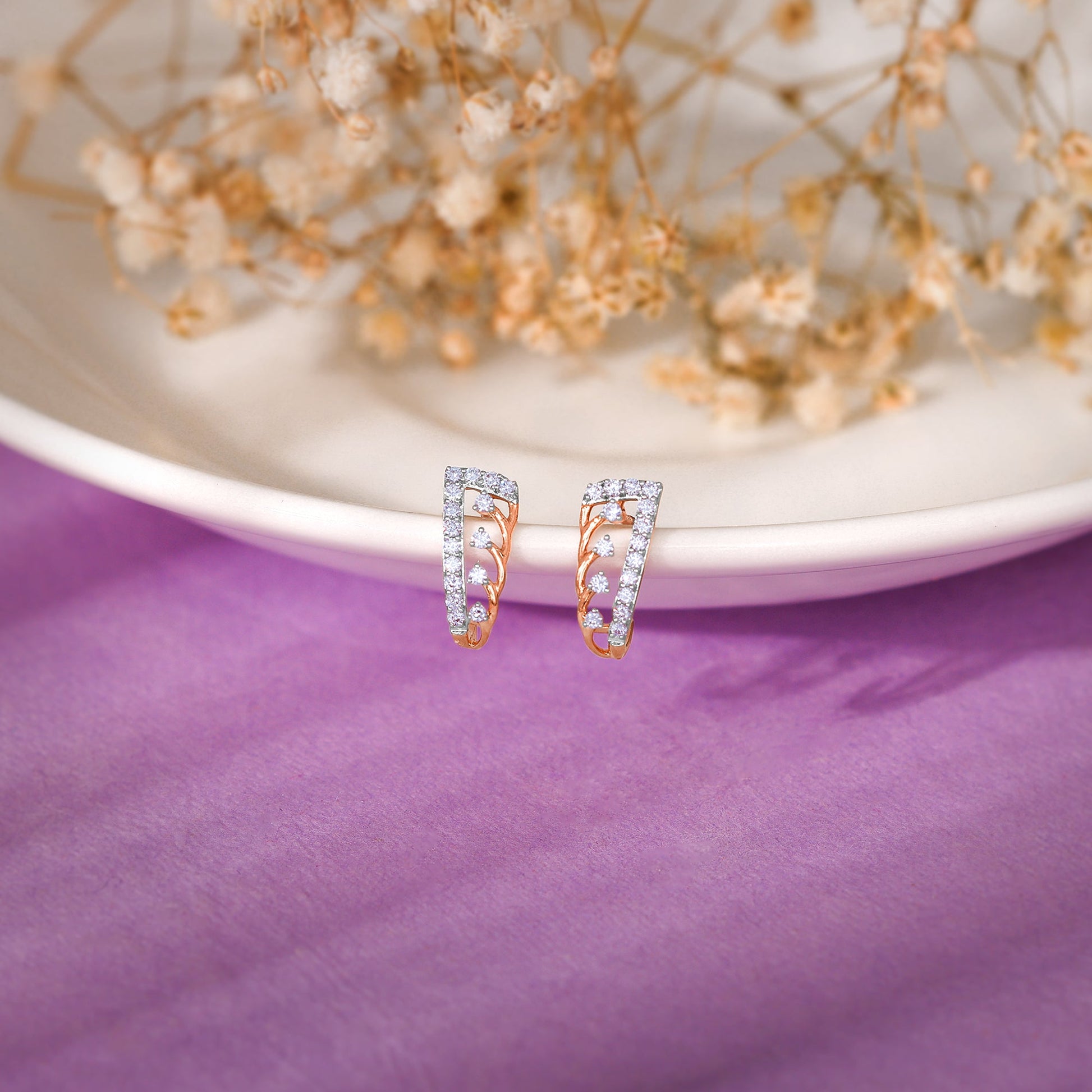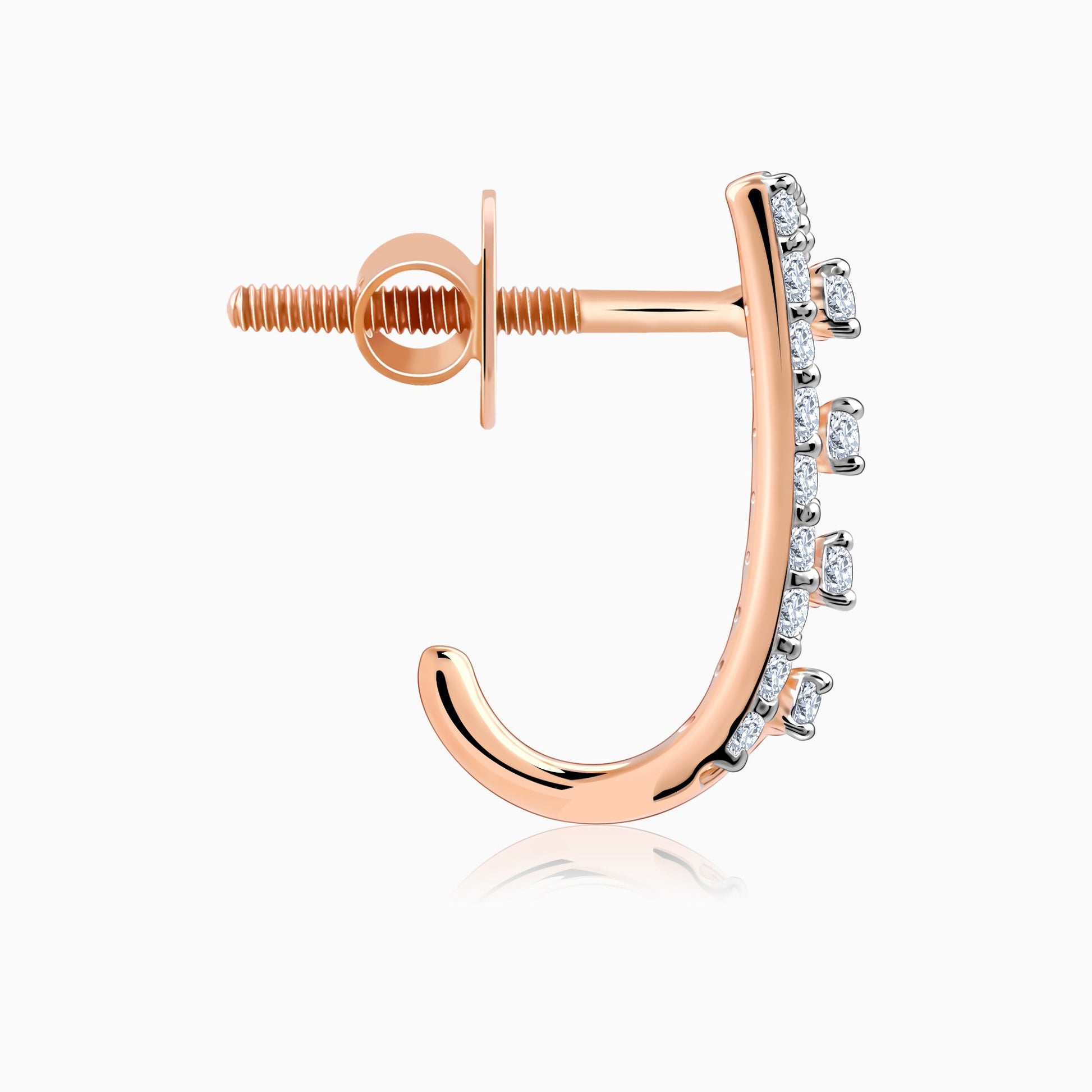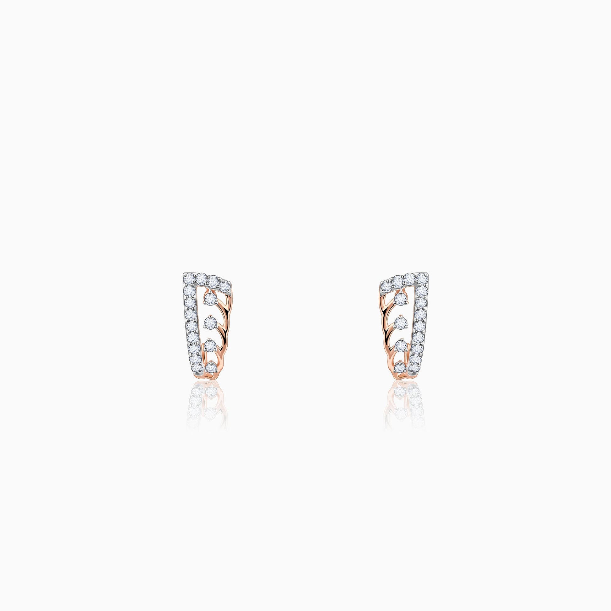 Shaped like an elongated triangle, these pure rose gold earrings have four singular stones emerging from one side toward the other.